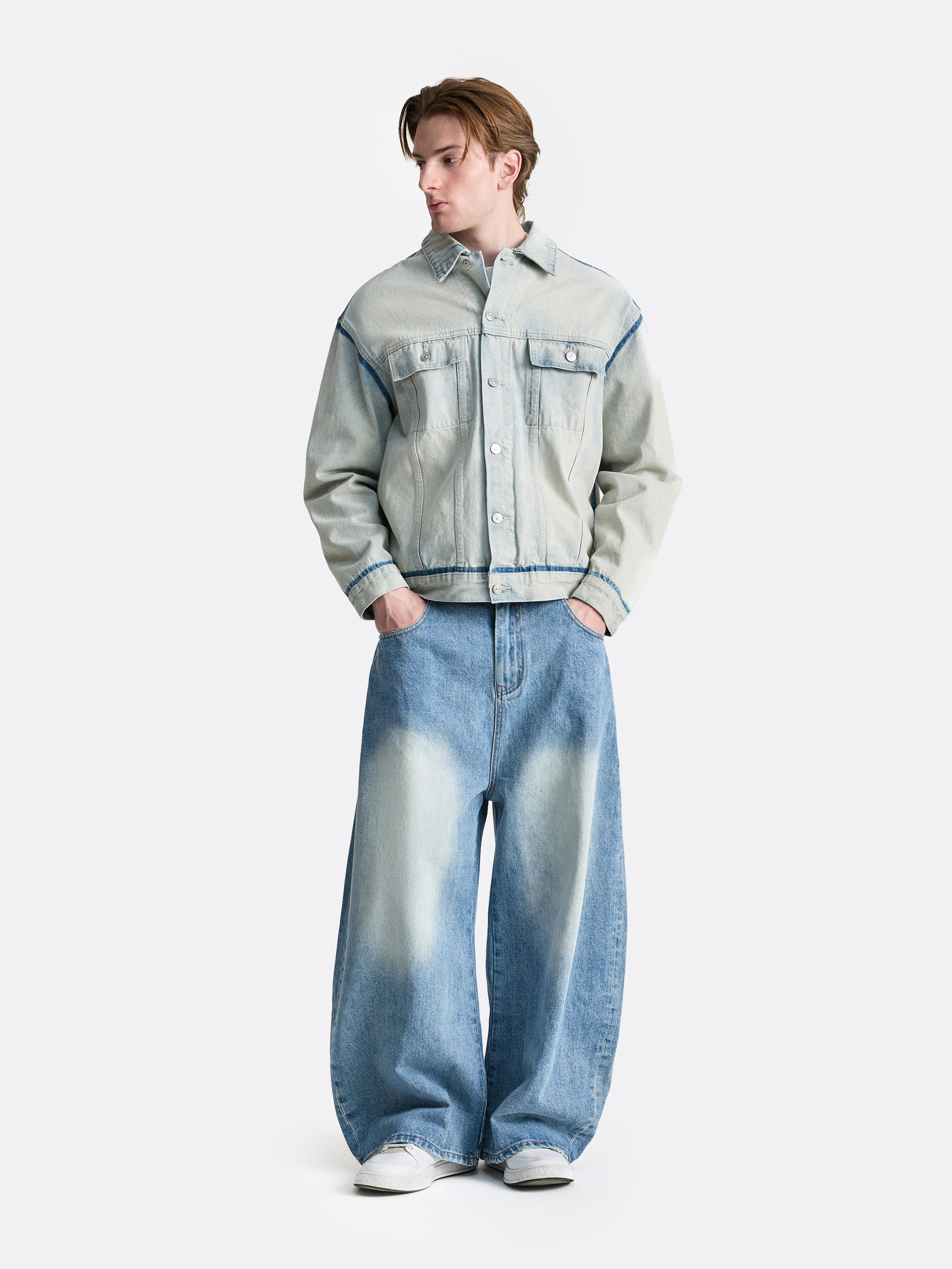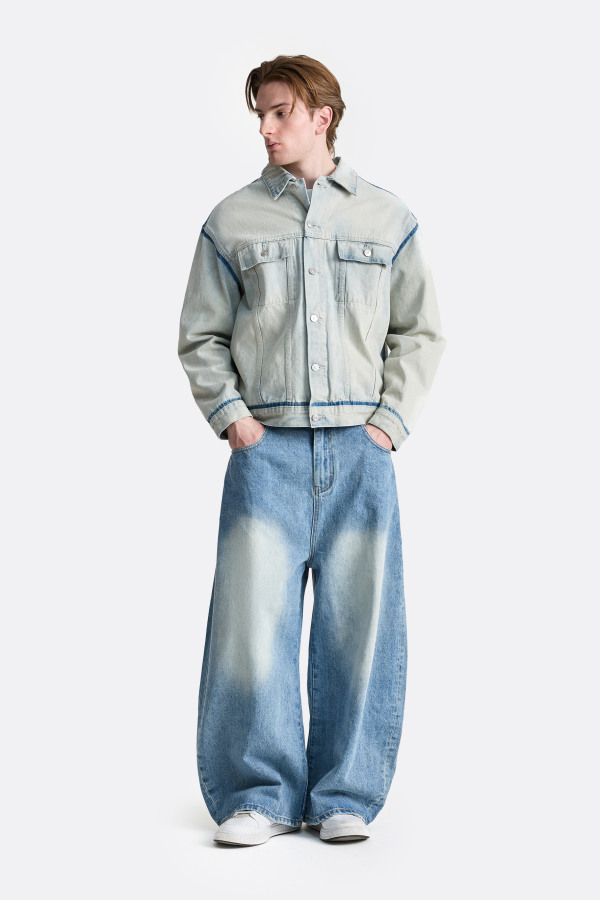 Джинсовая куртка прямого кроя в эффектном выбеленном оттенке с контрастными швами. Модель выполнена из плотного денима, что обеспечивает износостойкость и комфорт в носке. Классический отложной воротник, застежка на пуговицы и накладные карманы на груди подчеркивают стильный ретро-дизайн. Универсальный фасон делает куртку идеальной для создания многослойных образов в стиле casual и streetwear.