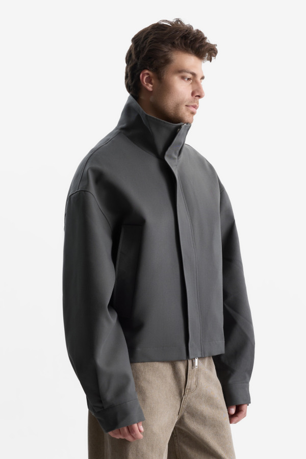 Укороченный тренч — современная интерпретация классического силуэта. Широкий воротник-шаль придаёт образу архитектурность, а плотный хлопковый материал держит форму и защищает от ветра. Свободный крой и вместительные накладные карманы обеспечивают комфорт и практичность в городских условиях. Идеален для многослойных образов и межсезонья.