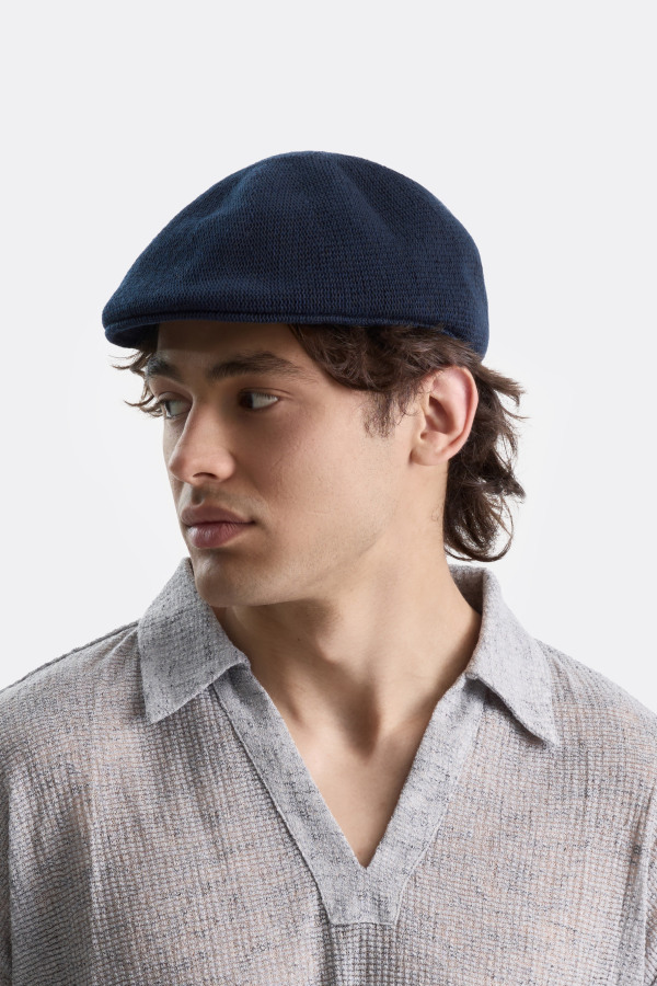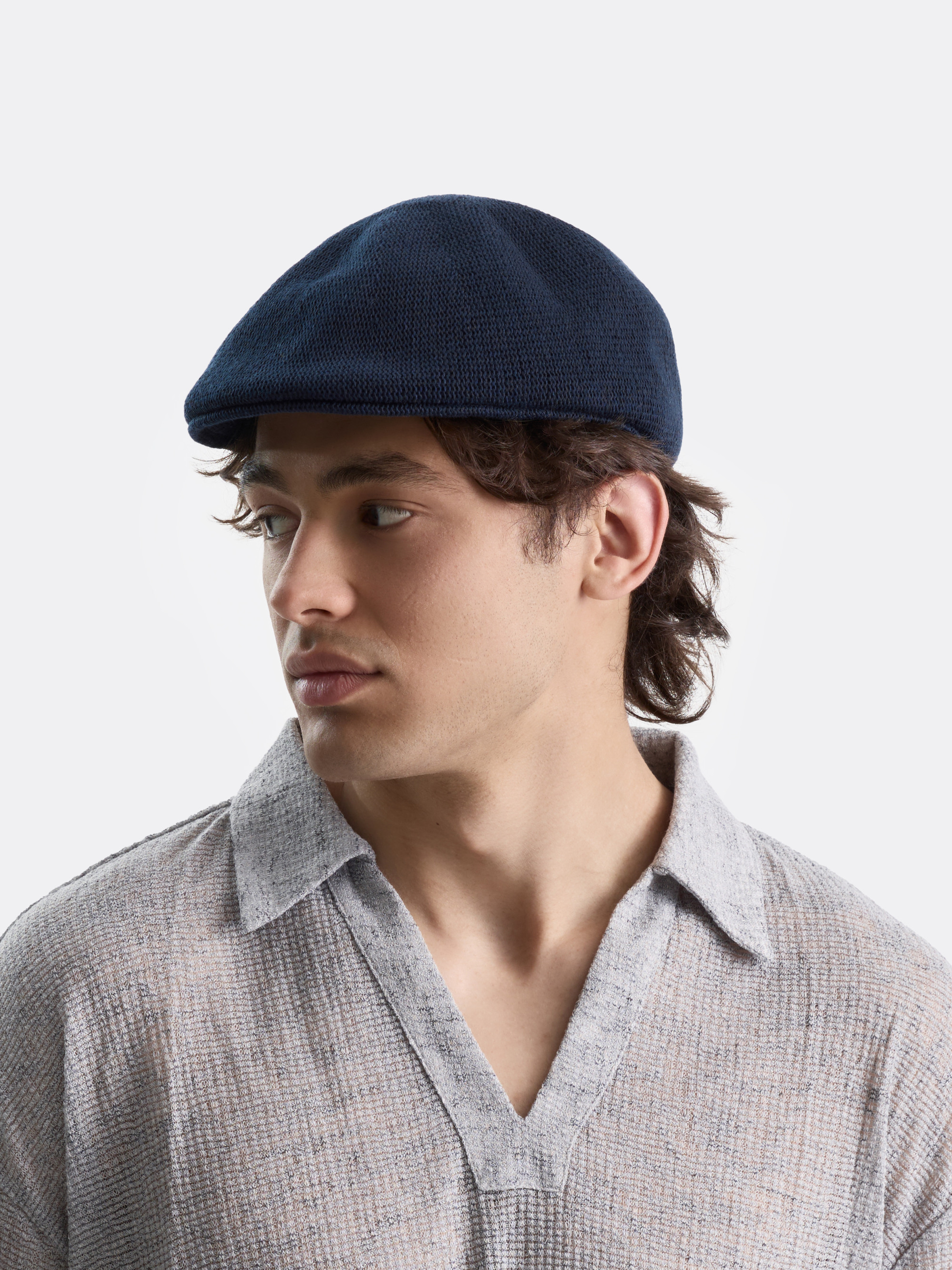 Кепка с гладкой округлой тульей и компактным прямым козырьком. Структура ткани — с мелким рельефом, создающим эффект вязки. Благодаря мягким краям и плотной посадке, модель комфортно сидит на голове и легко интегрируется в повседневные образы.