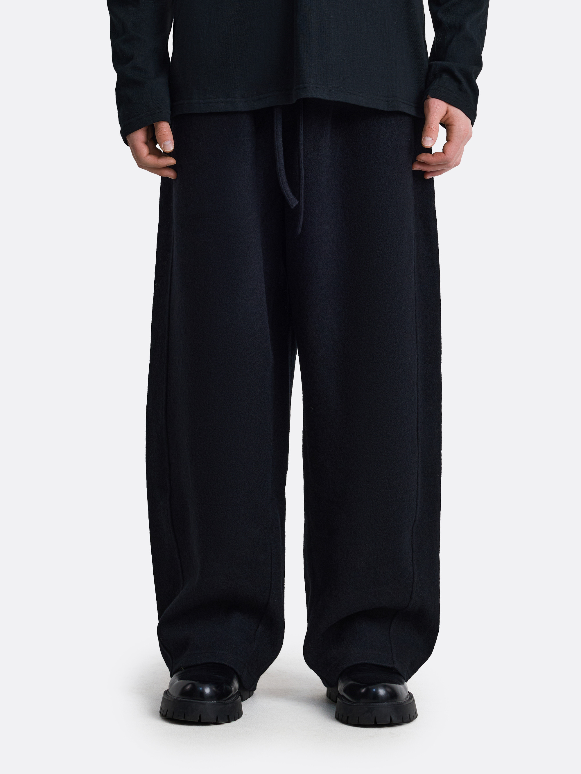 Свободные брюки, выполненные из приятного на ощупь материала на основе шерсти с лёгким ворсом. Прямой объёмный силуэт создаёт расслабленную вертикаль, а эластичный пояс добавляет комфорта и естественной посадки. Аккуратный шов вдоль штанины визуально вытягивает линию и делает образ чище. Лёгкость, тепло и минимализм — спокойная база для осенних и зимних образов.