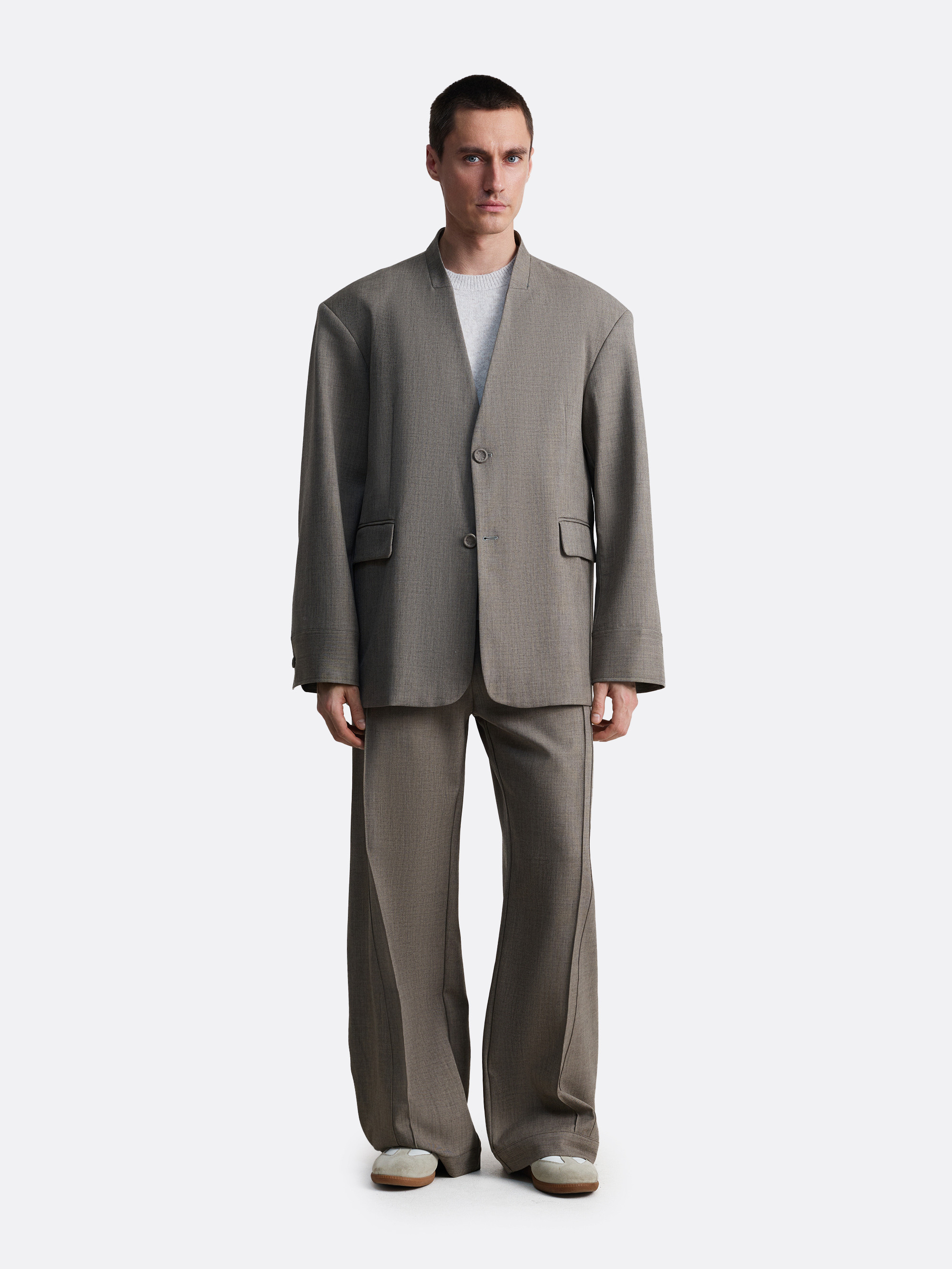 Пиджак с плавно скроенной линией плеч и мягкой посадкой, создающий современный силуэт без излишней формальности. Минималистичная горловина без лацканов визуально вытягивает линию корпуса, а одинарная застёжка подчёркивает чистую геометрию переда. Фактура ткани лёгкая и пластичная, благодаря чему пиджак держит форму, но остаётся расслабленным в движении. Карманы с клапанами добавляют аккуратный акцент, а общий образ — ту самую интеллектуальную простоту.