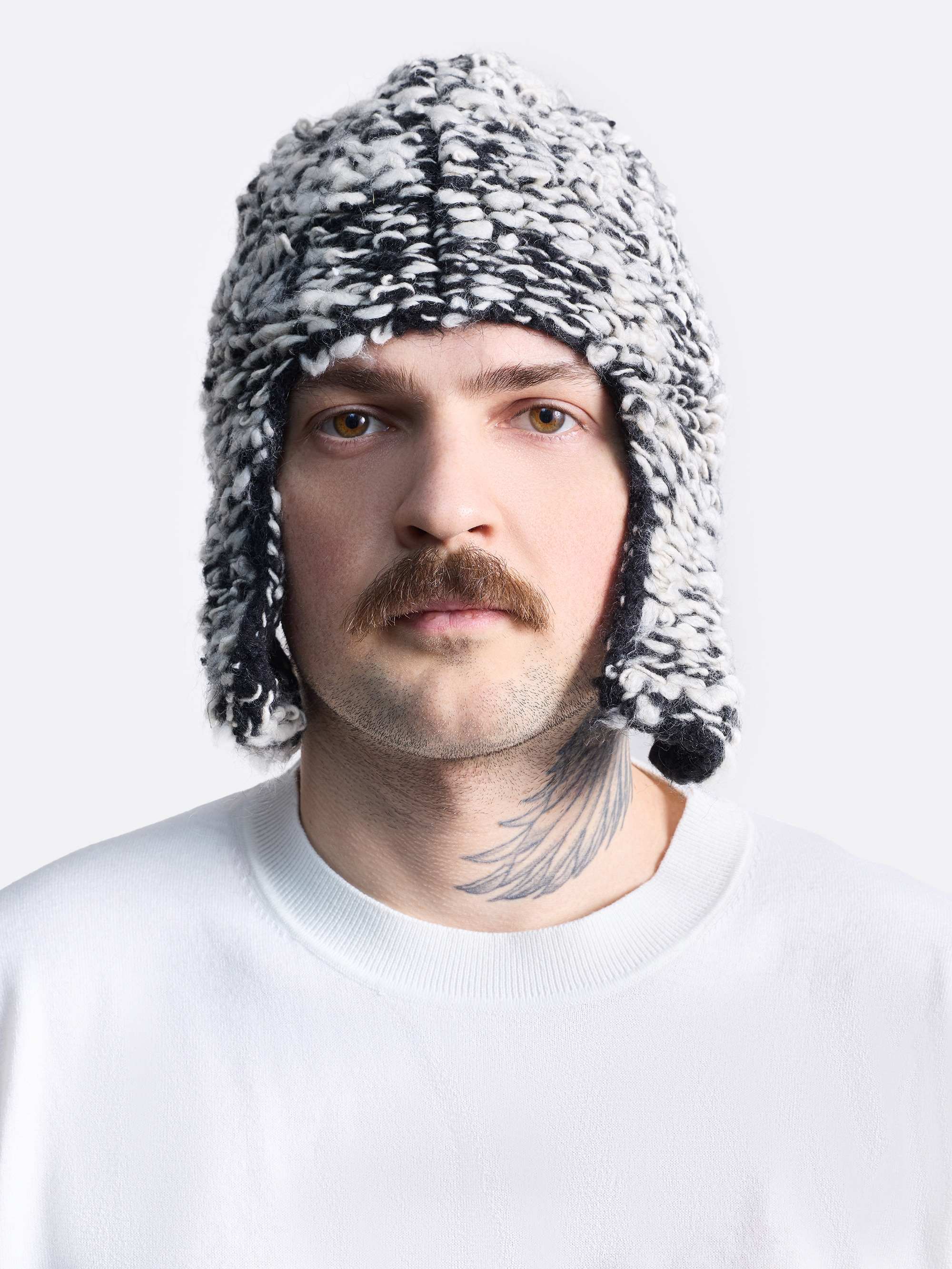 Шапка-ушанка фактурной вязки. Классический крой с удлинёнными «ушками», которые обеспечивают дополнительную защиту от ветра и низких температур. Мягкая, бархатистая фактура придаёт шапке особый шарм и делает её выразительным акцентом в зимнем образе. Шапка представлена в белом, сером и темно-сером цветах.