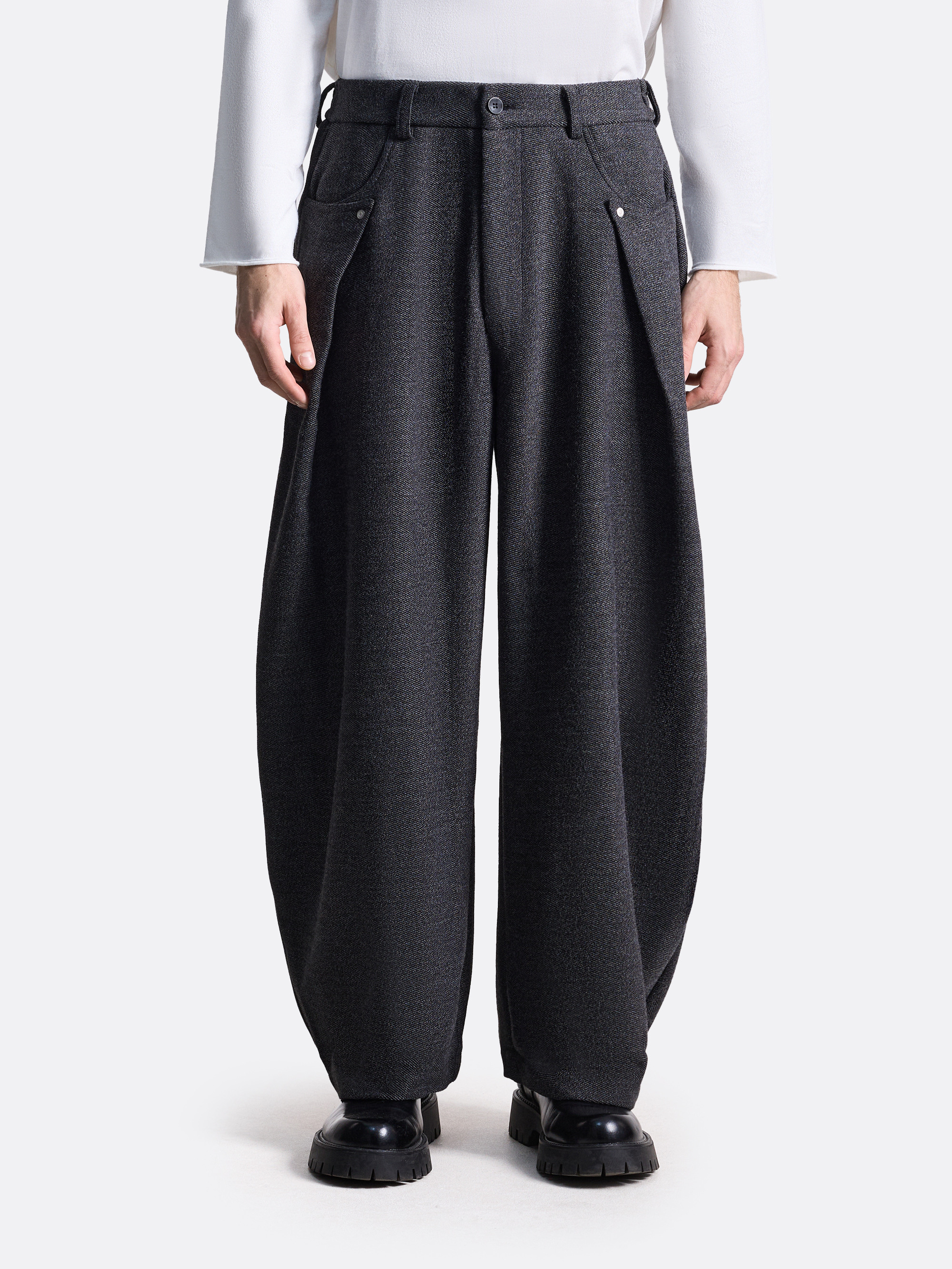 Широкие брюки с защипами. Средняя посадка, широкие брючины, декоративные элементы на карманах с металлическими заклёпками придают изделию стильный акцент. Плотный материал с добавлением шерсти хорошо держит форму. Брюки легко комбинируются с базовыми классическими рубашками, лонгсливами или футболками. Модель представлена в сером и черном цветах.