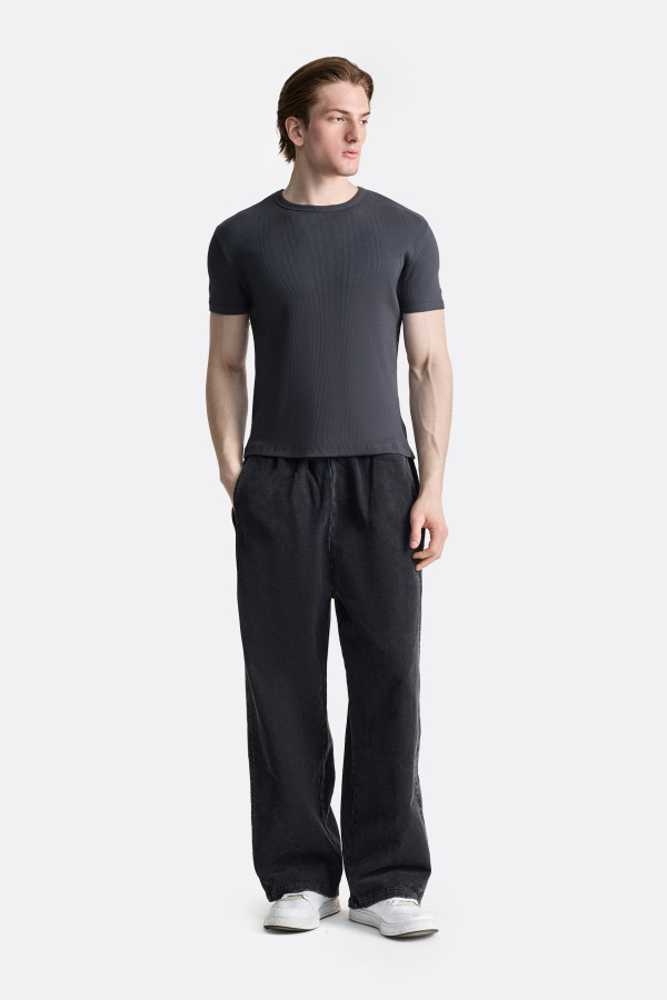 Футболка с лаконичным дизайном и аккуратной посадкой по фигуре. Классический круглый вырез и короткий рукав формируют универсальный силуэт, который легко вписывается в повседневный гардероб. Материал с лёгкой фактурой в рубчик добавляет глубину базовой модели и делает ее более выразительной как самостоятельный элемент образа, а также как основу для многослойных сочетаний.