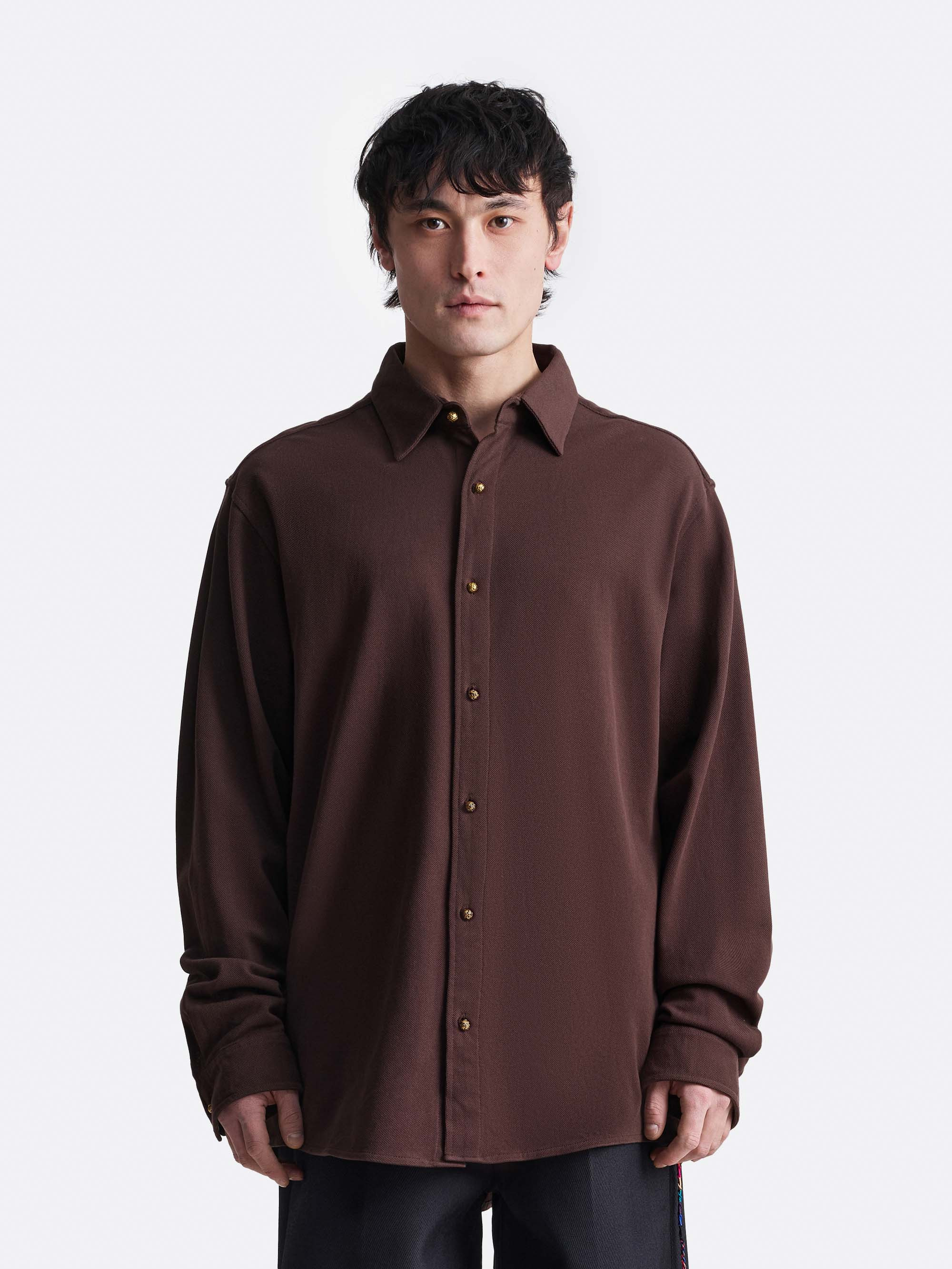 Рубашка свободного силуэта с мягкой посадкой и спущенной плечевой линией. Модель выполнена из 100% хлопка, что обеспечивает комфорт и естественную воздухопроницаемость. Центральная застёжка на пуговицы и классический отложной воротник сохраняют аккуратную, лаконичную форму. Модель представлена в чёрном, коричневом и белом цветах.