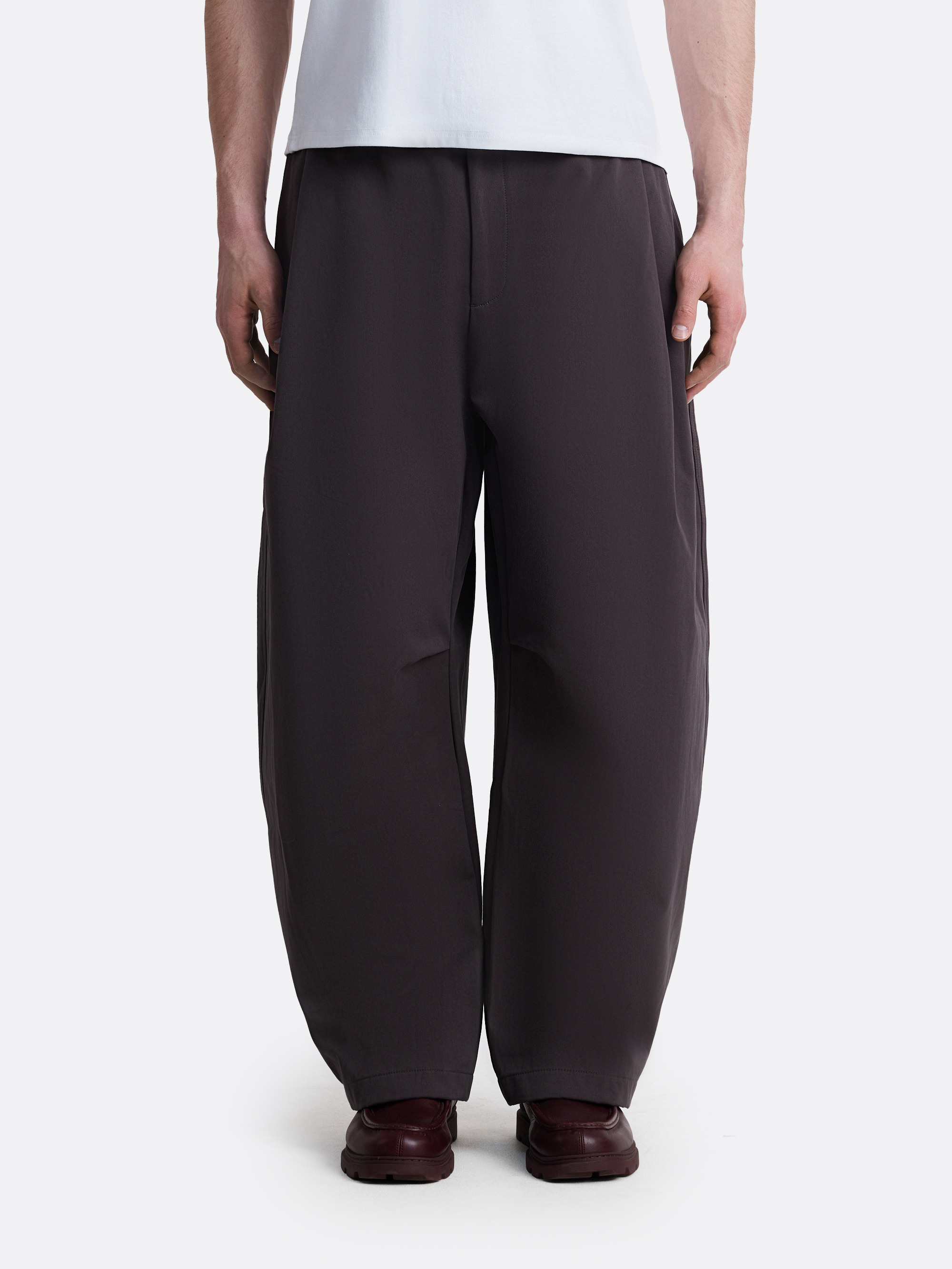 Объёмные плотные брюки Balloon — это про выразительный силуэт и архитектурные линии. Форма сферического объёма создаётся за счёт широких штанин с мягкими заломами и аккуратными вертикальными швами. Глубокие вытачки на задней части усиливают трёхмерность, а плотный матовый материал держит форму без тяжести. Посадка свободная, с лёгким расширением к низу и мягкой фиксацией по щиколотке.