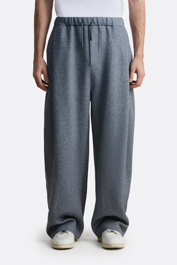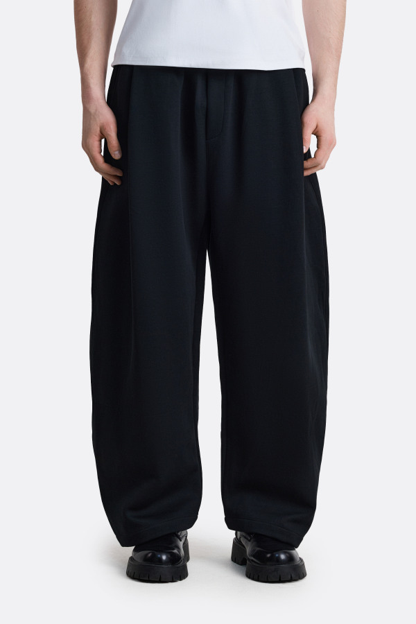 Свободные брюки с выразительным объёмом и мягкой посадкой, которые держат баланс между расслабленным силуэтом и аккуратной конструкцией. Эластичный пояс со шнурком, округлые линии по бокам, один задний карман и лёгкая фактура материала — всё собрано так, чтобы брюки двигались за телом и давали комфорт без ощущения тяжести. Силуэт плавно уходит к низу, создавая фирменный дрейфующий контур.
