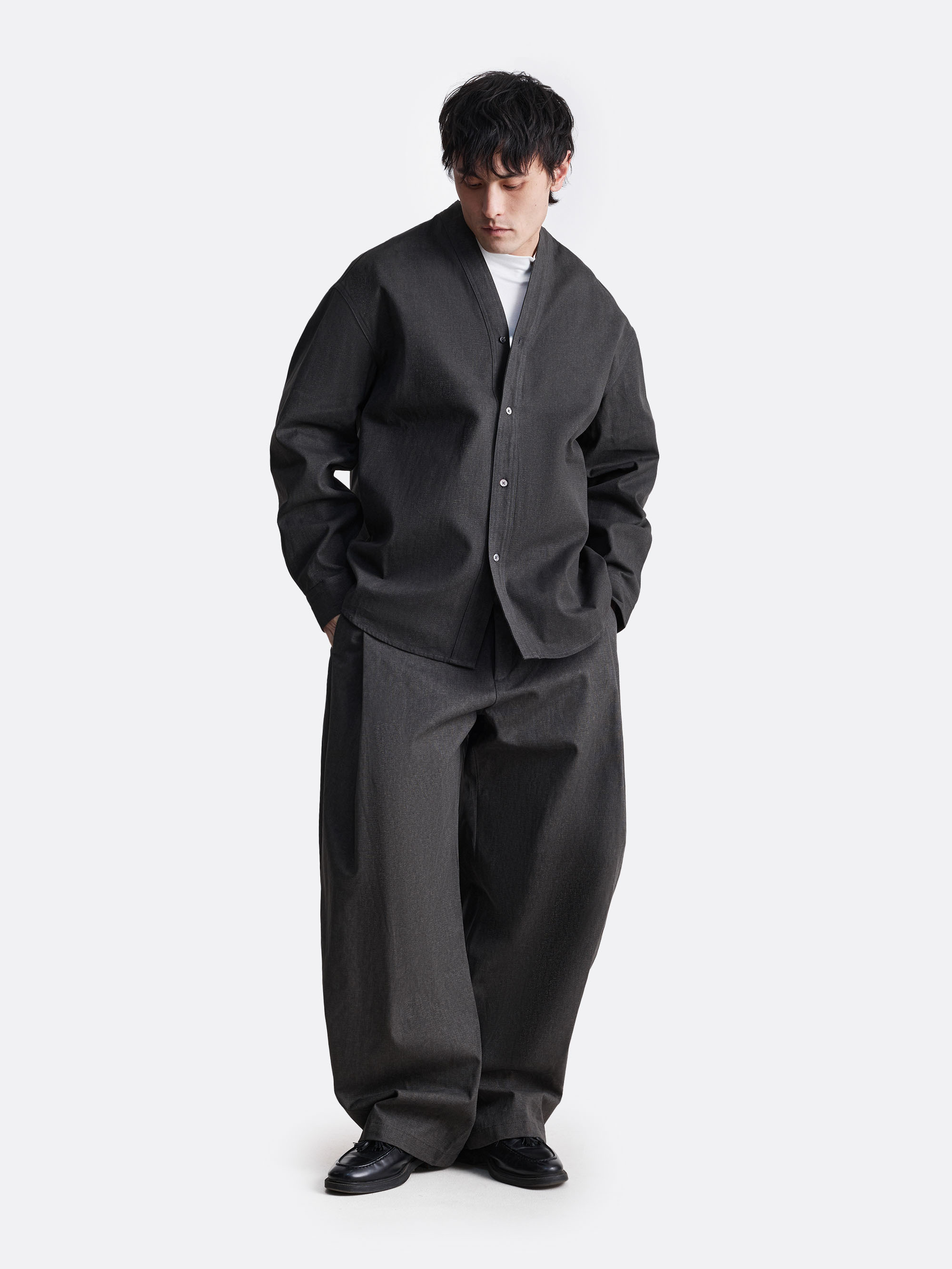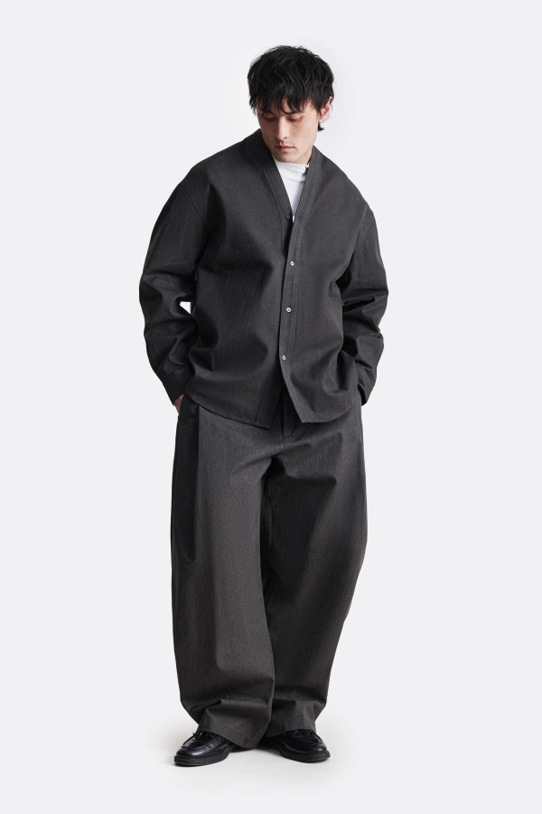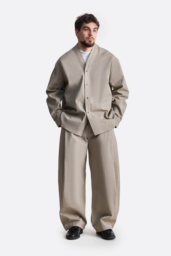 Кимоно свободного силуэта, выполненное из 100% хлопка, что подчеркивает его естественную фактуру и комфорт в носке, поддерживая идею осознанного минимализма. Лаконичный V-образный вырез без классического воротника формирует сдержанный, утилитарный образ, а свободная конструкция даёт ощущение воздуха и пространства. Философский смысл харукадзэ — с японского «весенний ветер» — раскрывается в движении: мягко, легко и без лишних акцентов.