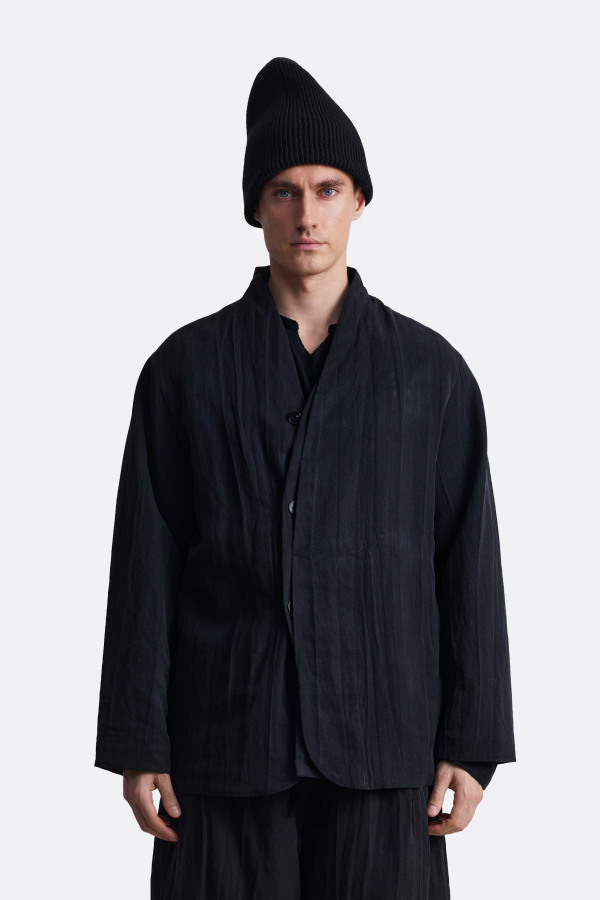 Утепленное кимоно Shibui — это адаптация классического японского силуэта в духе минимализма NO'CONCEPT. Выполнен из плотного матового материала с вертикальной фактурой и мягкой формой плеч. Прямой крой, глубокий ворот без лацканов и лаконичная застёжка на пуговицах создают образ, в котором чувствуется тишина, ритуал и внутренний стержень.