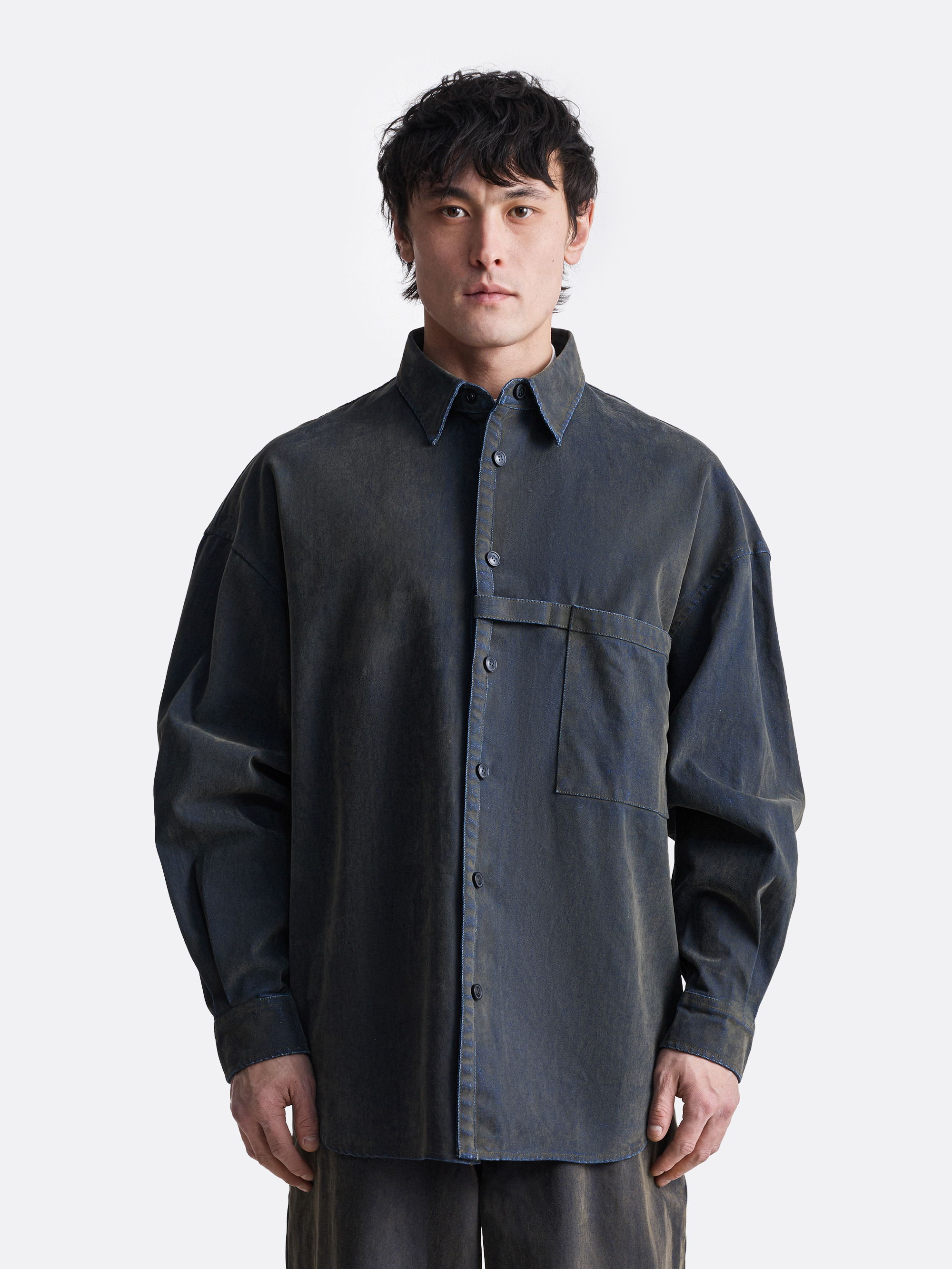Джинсовая рубашка оверсайз-кроя с легким эффектом потертости. Рубашка выполнена из плотного денима, что придает ей прочность и долговечность. Модель дополнена нагрудным карманом, воротником-стойкой и манжетами. Такой стиль одежды универсален и подходит как для повседневной носки, так и для создания более стильных образов.