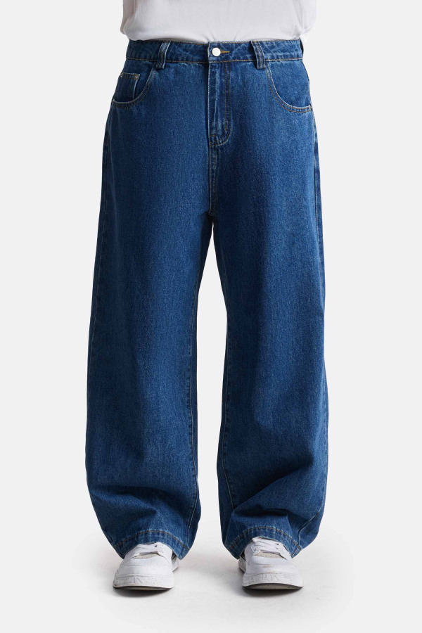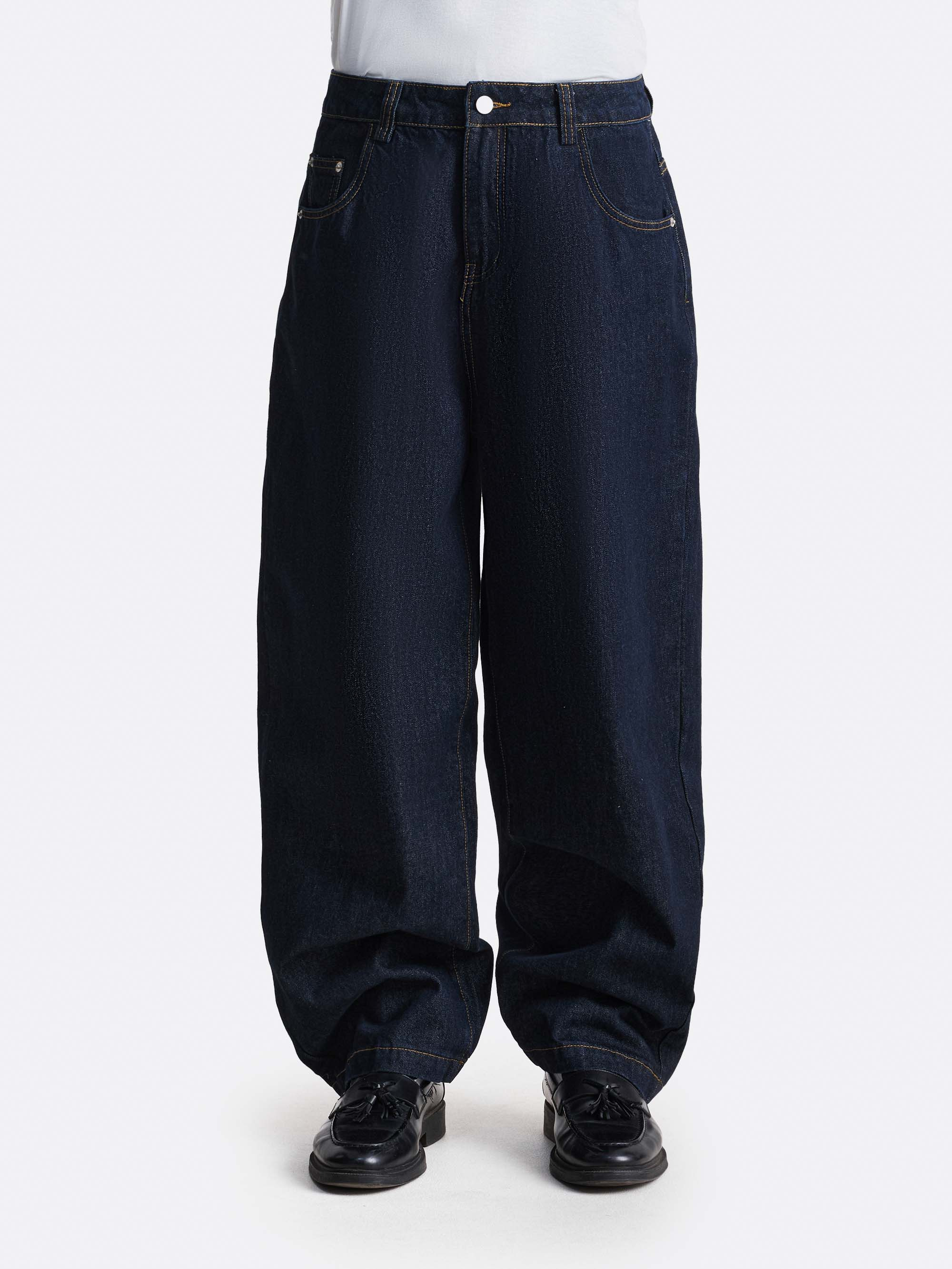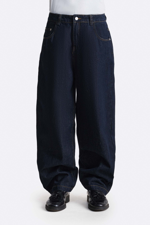 Джинсы свободного силуэта, выполненные из плотного денима в глубоких оттенках индиго. Прямой расширенный крой формирует объёмную линию и обеспечивает комфортную посадку. Классическая пятикарманная конструкция подчеркивает традиционный характер модели, а благородная индиго-палитра делает её актуальной основой для повседневных и стрит-образов.