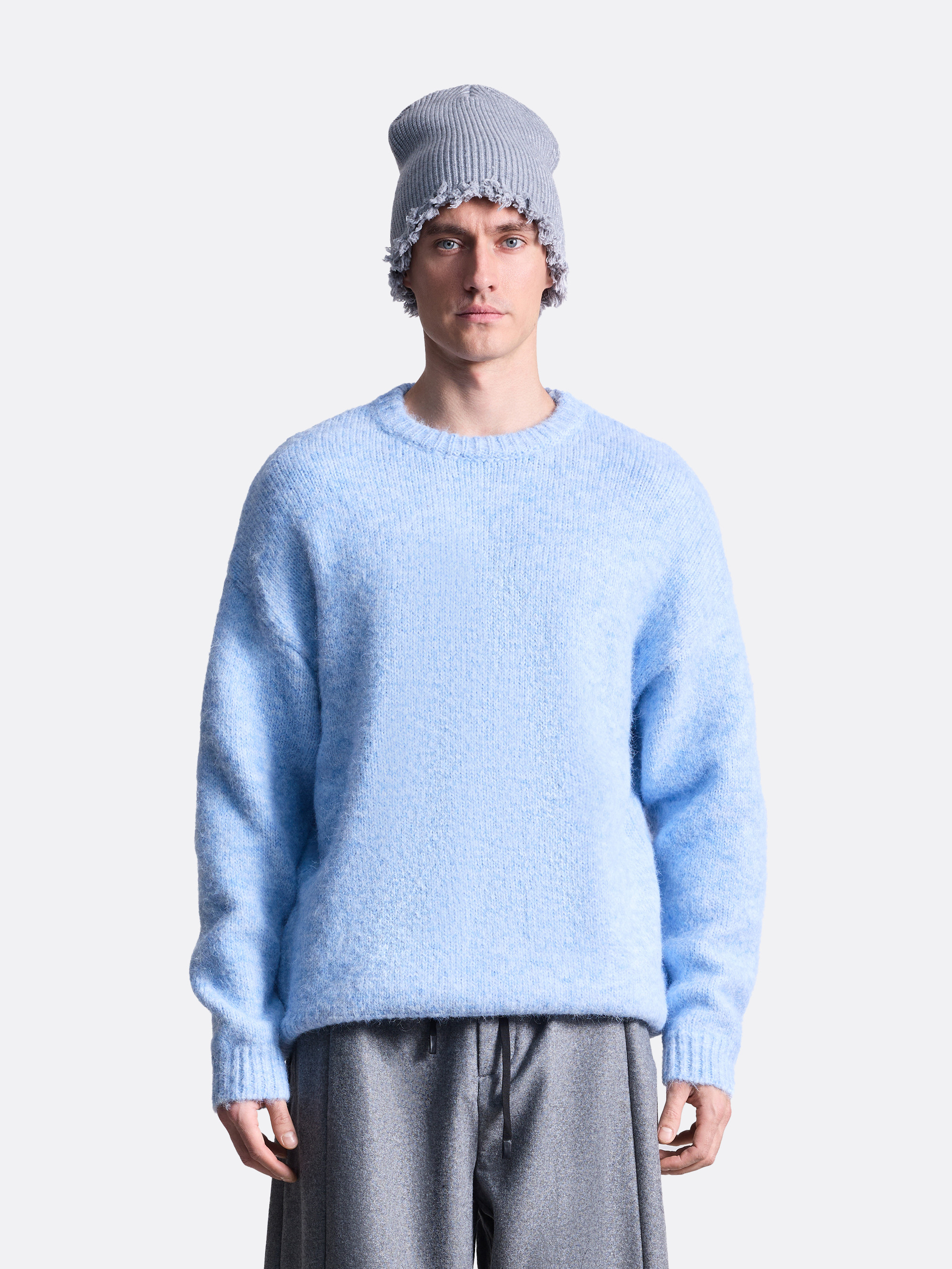 Вязаный свитер свободного кроя. Рельефная структура полотна создаёт эффект лёгкой пушистости, а аккуратные манжеты и низ изделия обработаны эластичной резинкой. Объёмная вязка придаёт модели особый шарм, а свободный крой обеспечивает комфортную посадку. Свитер представлен в бежевом, бордовом, голубом, зеленом и синем цветах.