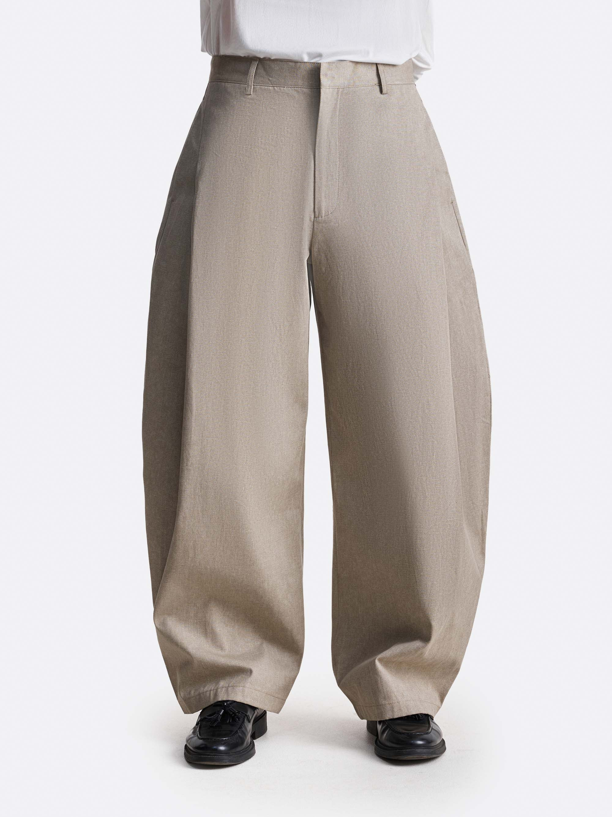 Брюки свободного кроя с широкими штанинам, формирующими объёмный силуэт. Натуральная ткань из 100% хлопка обеспечивает комфортную посадку. Лаконичный крой и отсутствие декоративных элементов подчеркивают утилитарный характер модели и позволяют легко интегрировать её в минималистичный комплект.