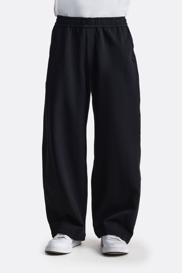 Модель с мягкой посадкой по талии и свободными прямыми штанинами. Лаконичный крой без лишнего декора делает акцент на силуэте и пластике ткани. Чёрный цвет подчёркивает глубину формы и аккуратную линию низа.