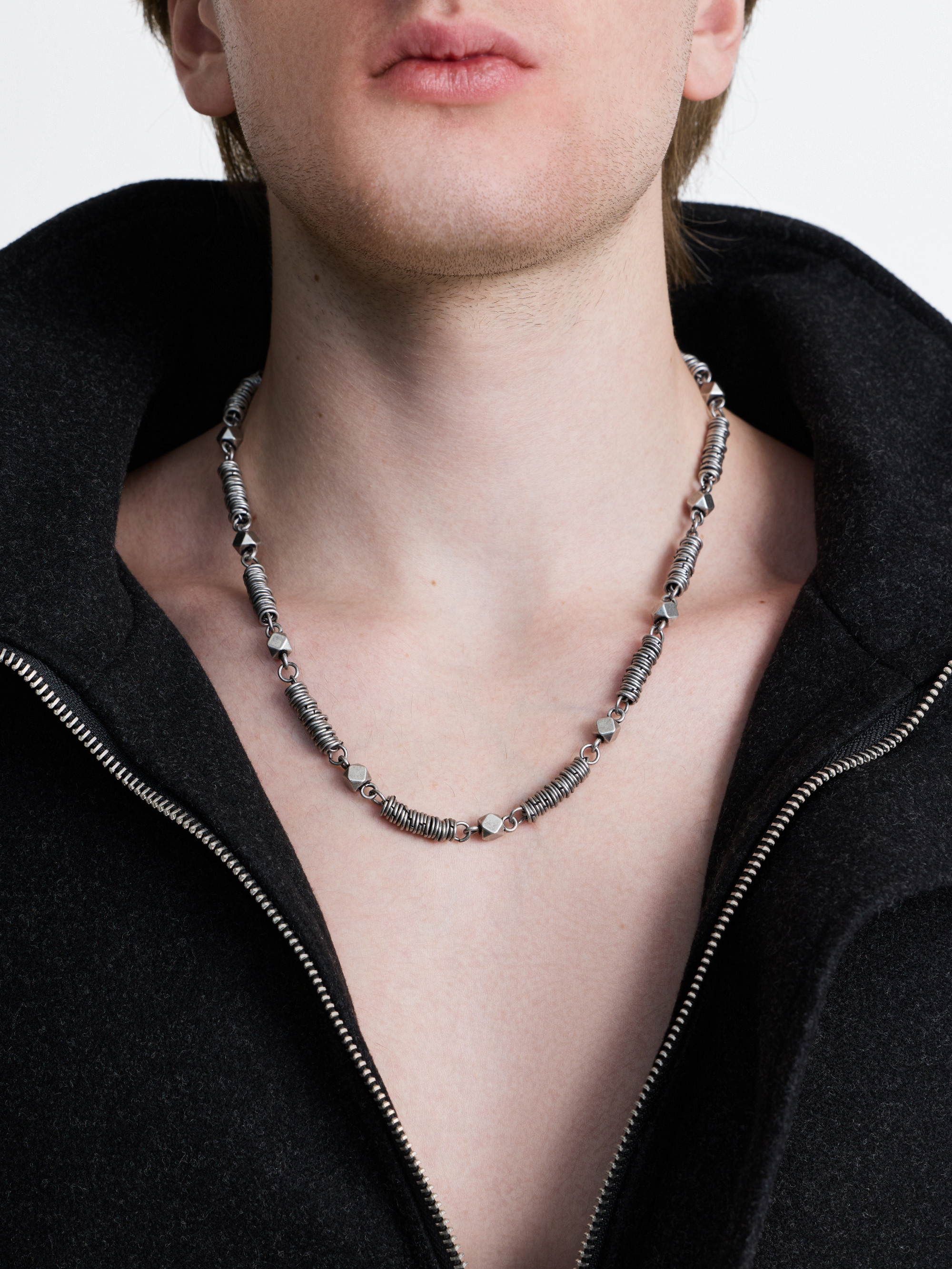 Цепь из металлических гранёных звеньев с равномерным ритмом и аккуратным соединением элементов. Лёгкий приглушённый блеск, гладкая посадка по шее и удобная длина. Нейтральный аксессуар, который подходит к повседневным и более строгим образам.