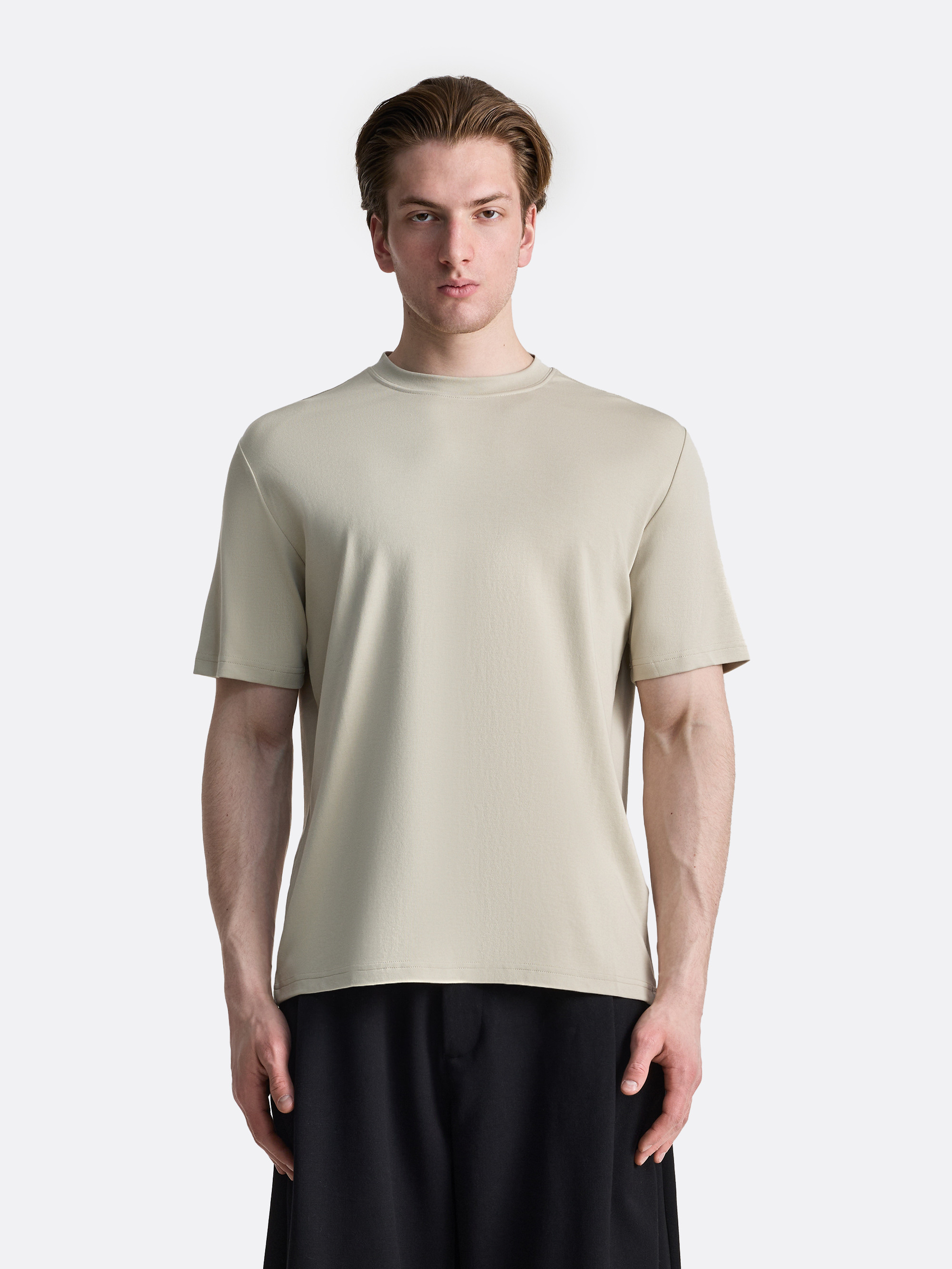 Футболка из лёгкой ткани, которая делает изделие комфортным для повседневной носки. Материал ощущается мягко и воздушно. Классический круглый вырез, аккуратная линия плеч и прямой крой формируют универсальный силуэт без лишних деталей. Модель выполнена в базовой палитре оттенков, что делает её удобной основой для повседневного гардероба.