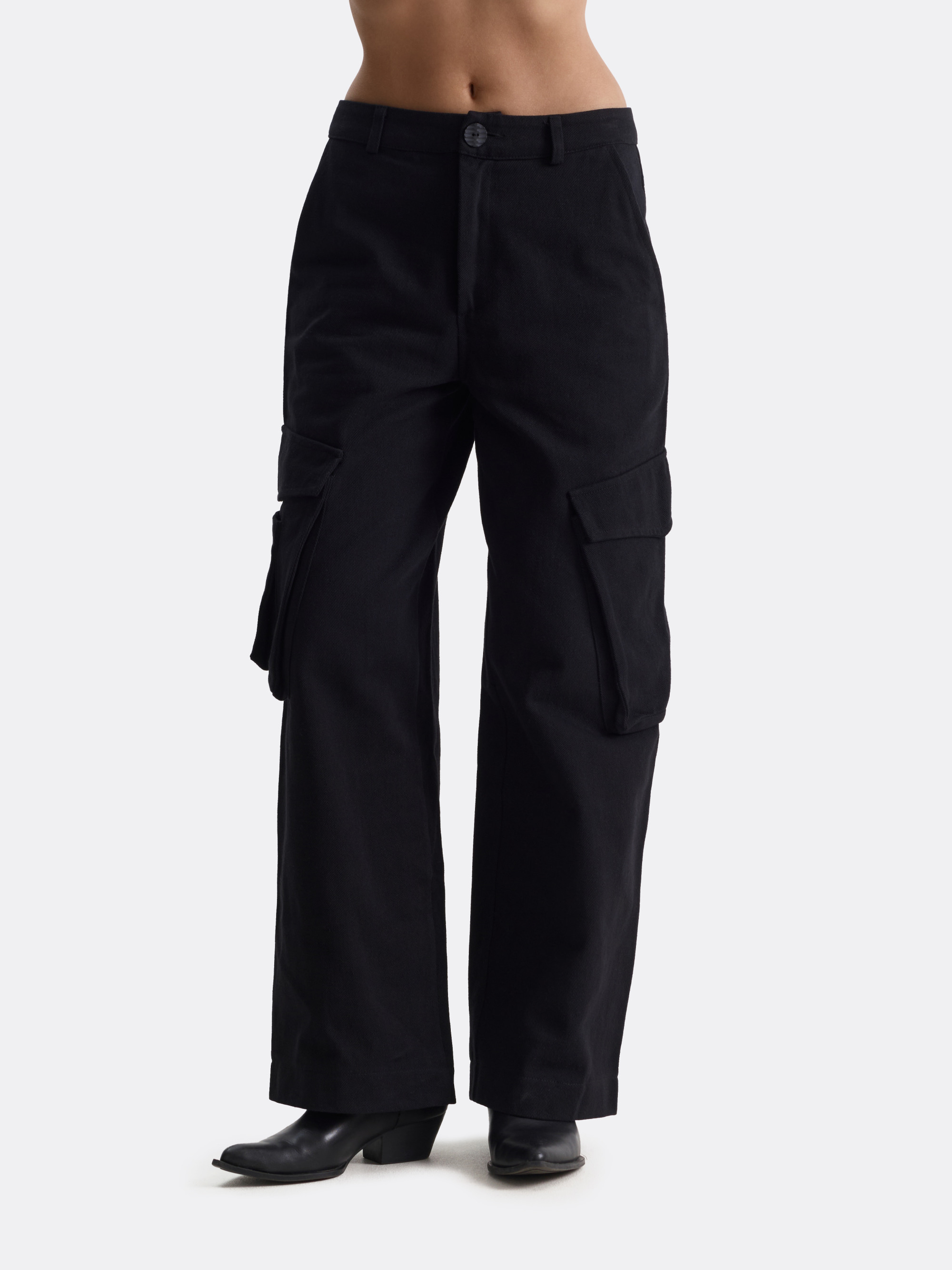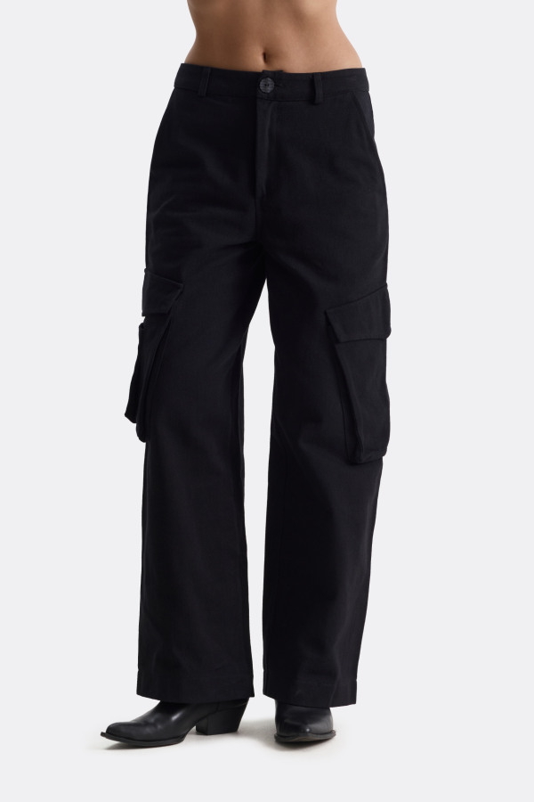Джинсы-карго с чистой геометрией и минималистичным вайбом. Широкий прямой крой и объёмные накладные карманы — визуально добавляют архитектурности образу. Средняя посадка фиксируется пуговицей и молнией, а шлёвки позволяют дополнить брюки ремнём. На спинке — аккуратные врезные карманы.