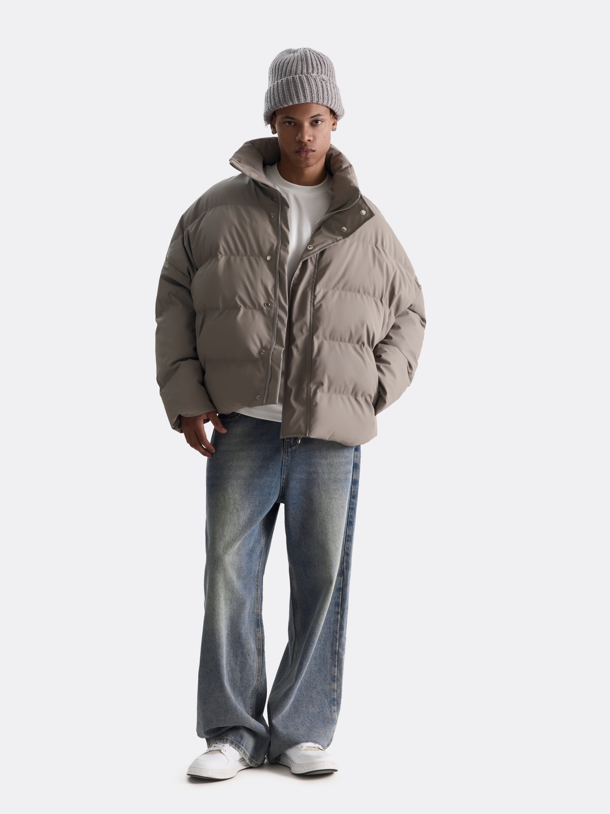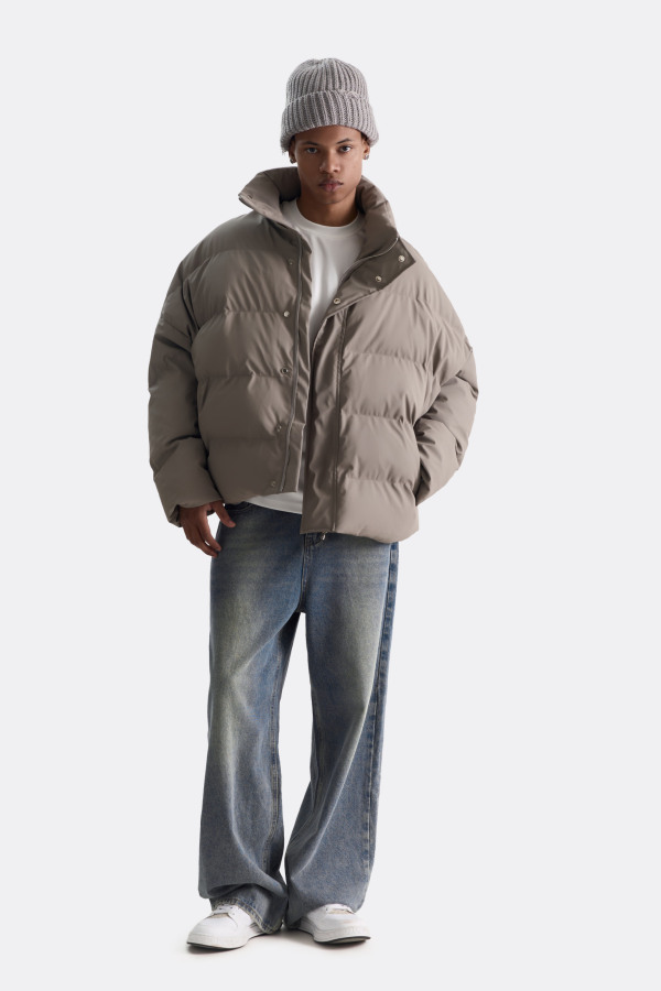 Минималистичная куртка прямого кроя с выразительным объёмом. Чёткая простёжка по горизонтали, скрытая молния и высокое горло — всё работает на чистую форму и защиту от холода. Удлинённые рукава и мягкая матовая фактура усиливают современный утилитарный образ.