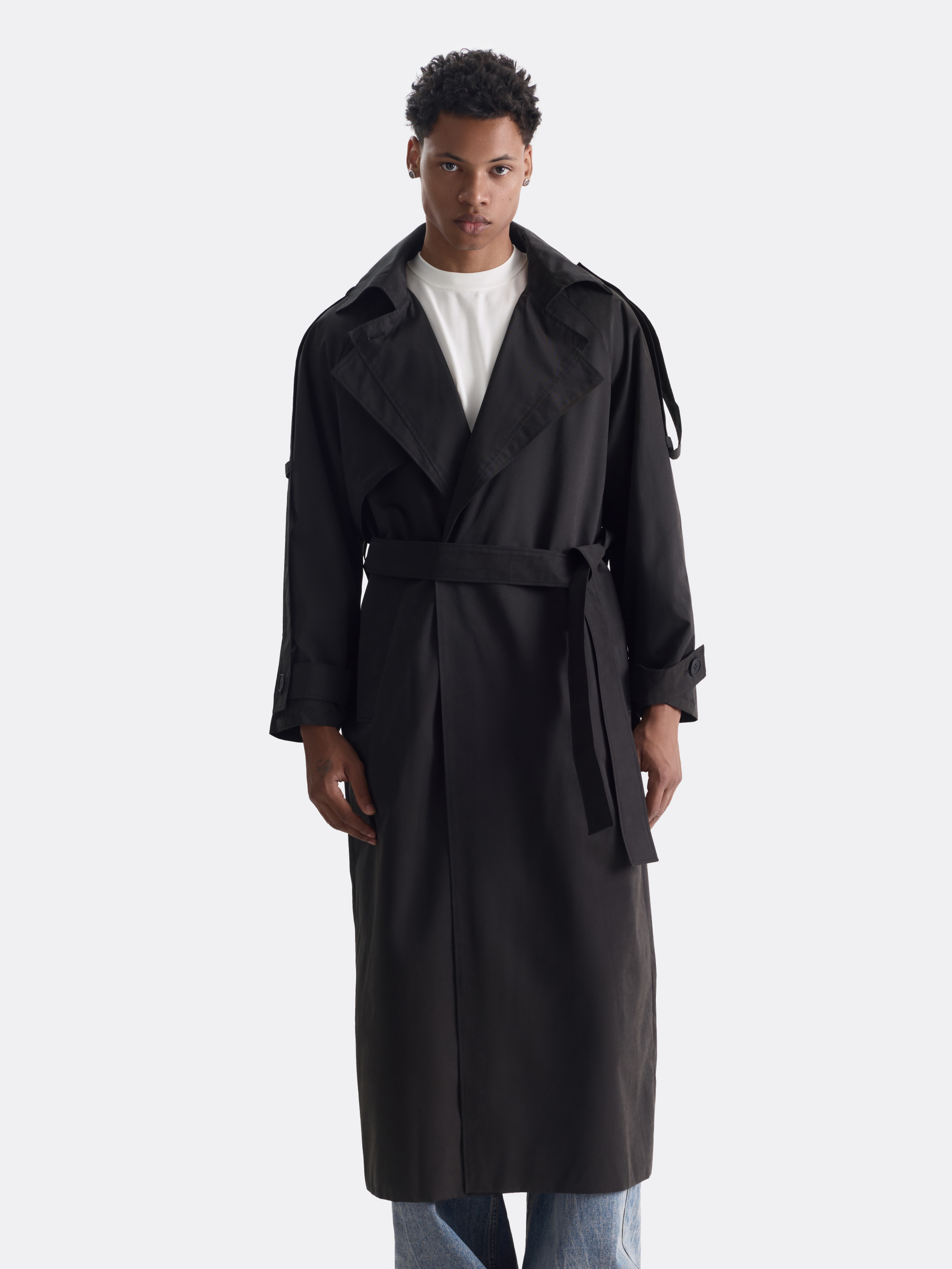 Удлинённый тренч с выразительной конструкцией плеч и мягкой линией запаха. Акцентные паты, широкие лацканы и функциональные клапаны придают классике современное прочтение. Ремень на талии позволяет варьировать силуэт от прямого к приталенному. Плотная, слегка матовая ткань подчёркивает графичность образа и делает его универсальным в городском ритме.