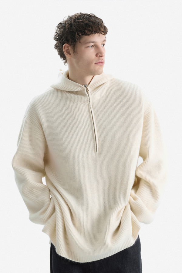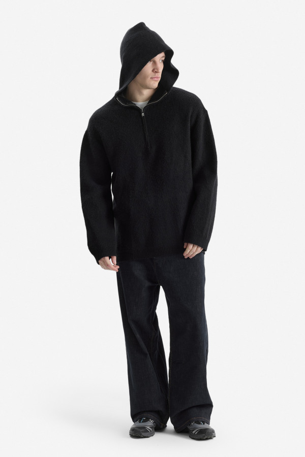 Удлиненный свитер с капюшоном и молнией – стильная и комфортная модель для прохладных дней. Выполнен из мягкого трикотажа с легкой пушистой текстурой, которая создает ощущение уюта и тепла. Объемный крой и спущенная линия плеч обеспечивают расслабленную посадку и свободу движений.