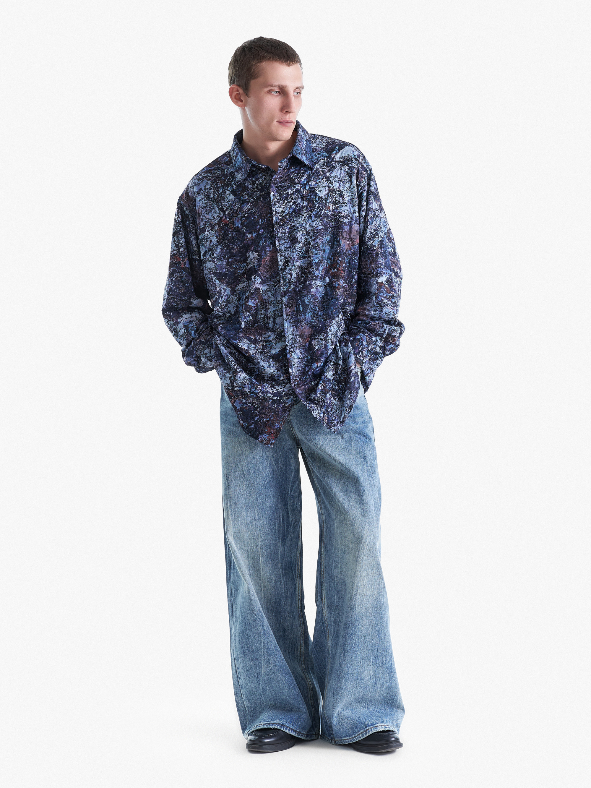 | Просторная рубашка с абстрактным рисунком в темно-синих и фиолетовых оттенках. Ткань отличается мягкостью и легким блеском, обеспечивая комфорт и стильный вид. Прямой крой и классический воротник делают модель универсальной — ее можно носить как самостоятельный элемент или в составе многослойного образа. Идеальный выбор для тех, кто ищет яркие акценты в повседневном гардеробе. |