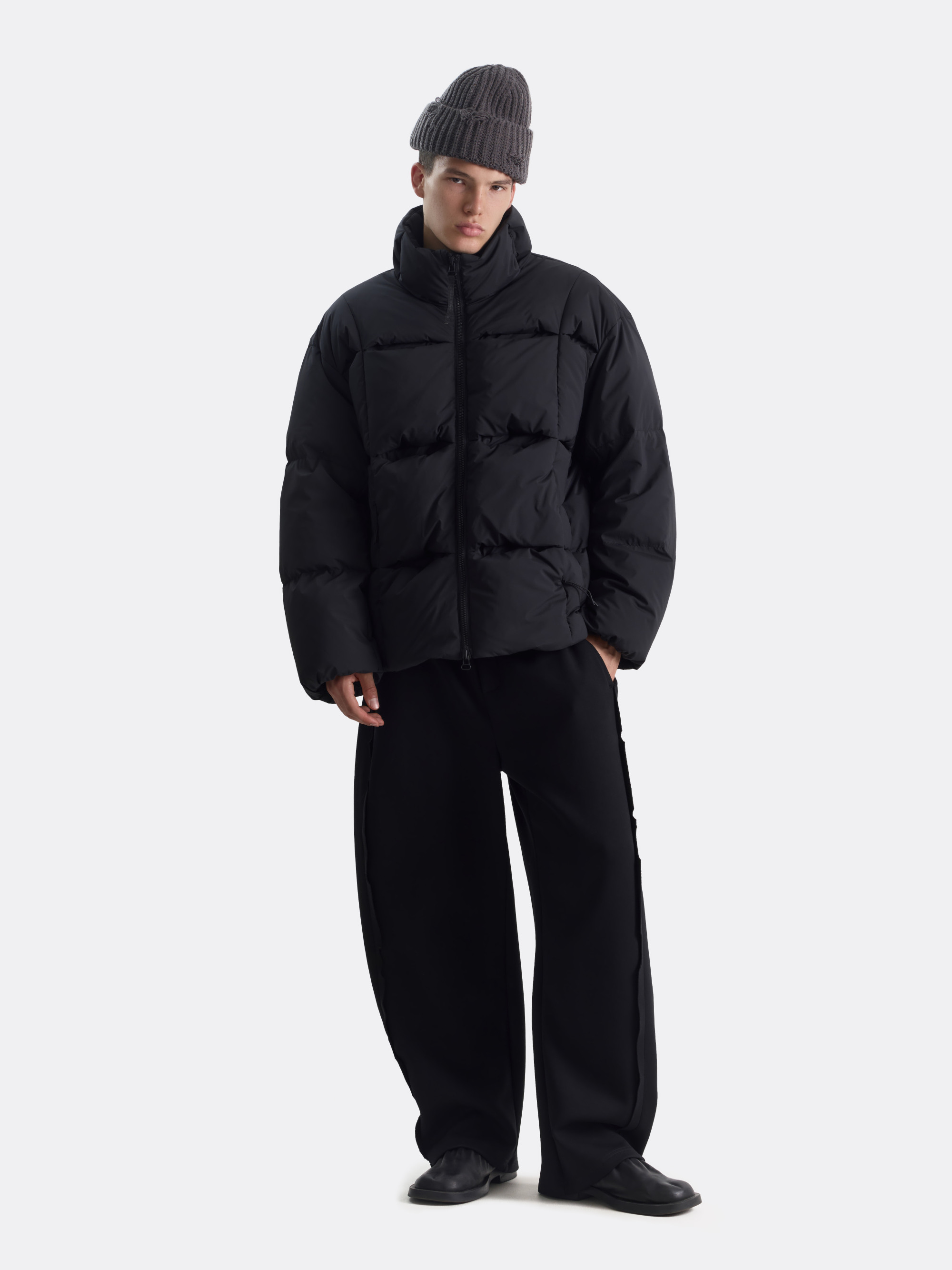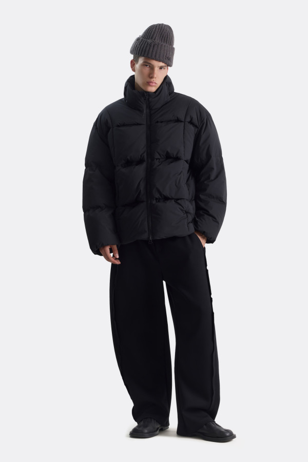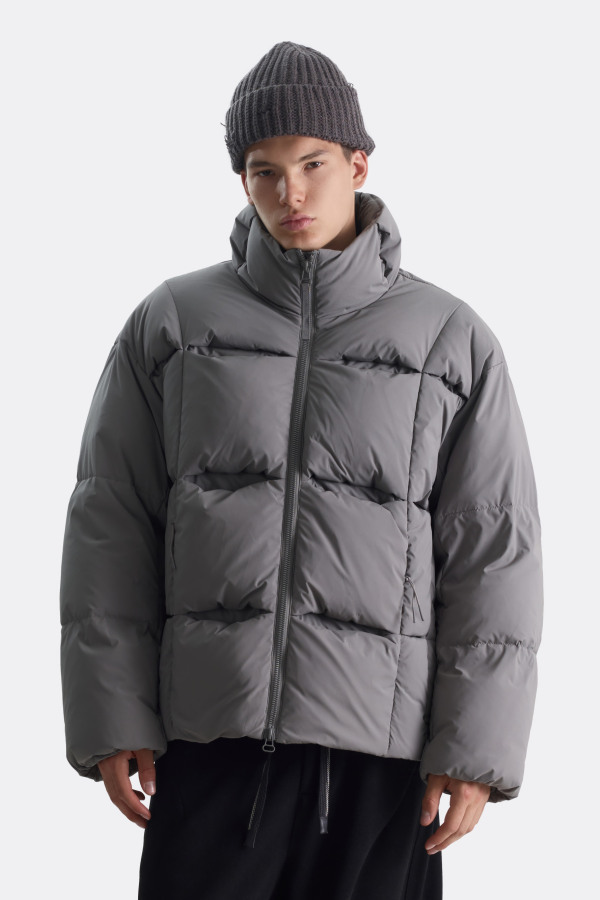 Объёмная пуховая куртка с характерной квадратной стёжкой и минималистичной формой. Высокий воротник-стойка надёжно защищает от ветра, а скрытая застёжка-молния поддерживает лаконичный силуэт. Модель выполнена в насыщенных практичных оттенках - черный и серый и дополнена функциональными боковыми карманами. Куртка с уверенным уличным характером и максимальной тёплой отдачей.