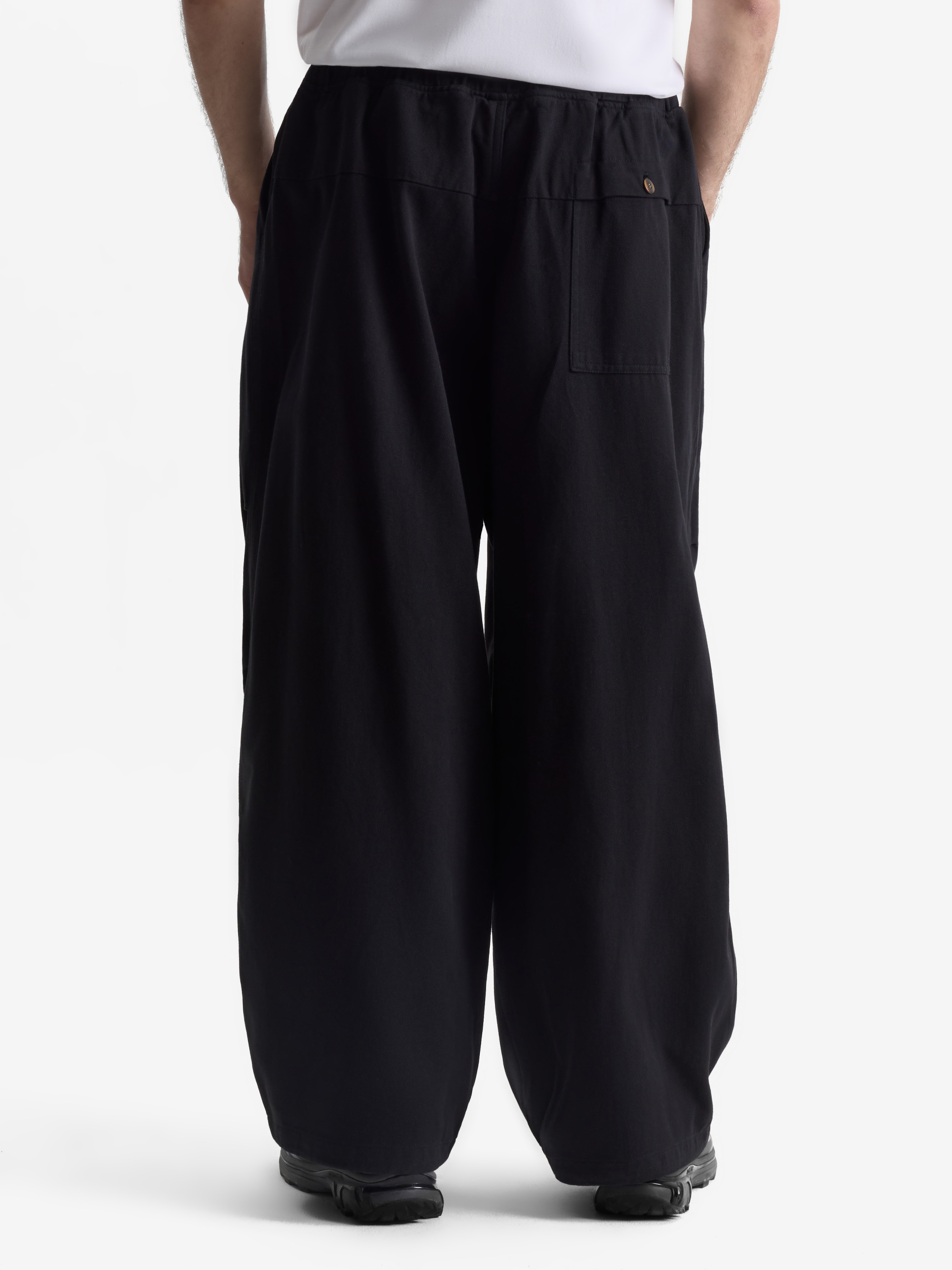 Брюки Soft Gravity — это максимум свободы и комфорта в минималистичном исполнении. Глубокий чёрный цвет делает модель универсальной, а широкий крой и лёгкая ткань обеспечивают непринуждённую посадку и лёгкость движений. Эластичный пояс с контрастным шнурком и резинки внизу брючин не только добавляет функциональности, но и становится выразительным акцентом. Эти брюки идеально подойдут для динамичного городского ритма, путешествий или расслабленных выходных. Созданы для тех, кто выбирает комфорт без компромиссов в стиле.