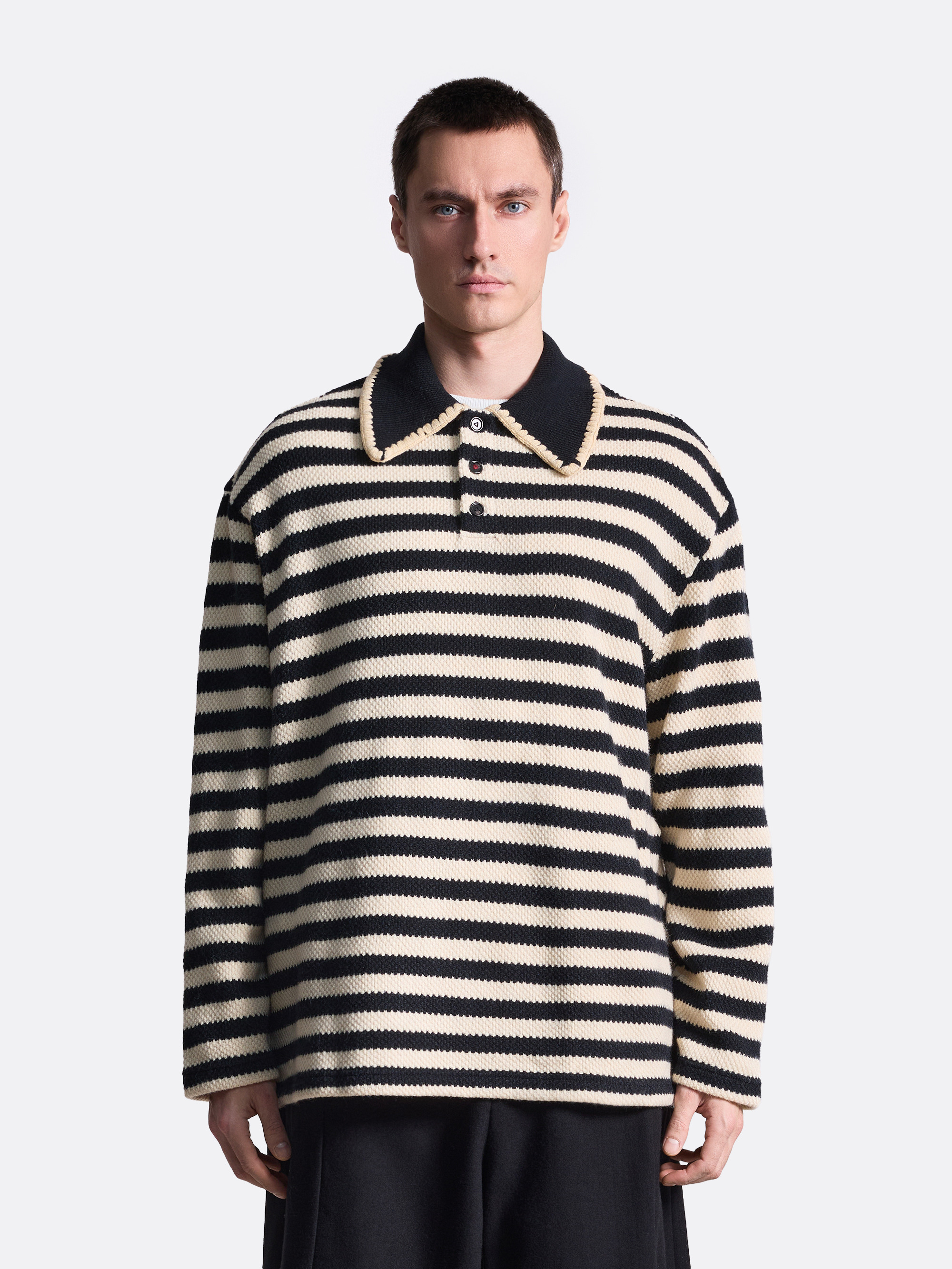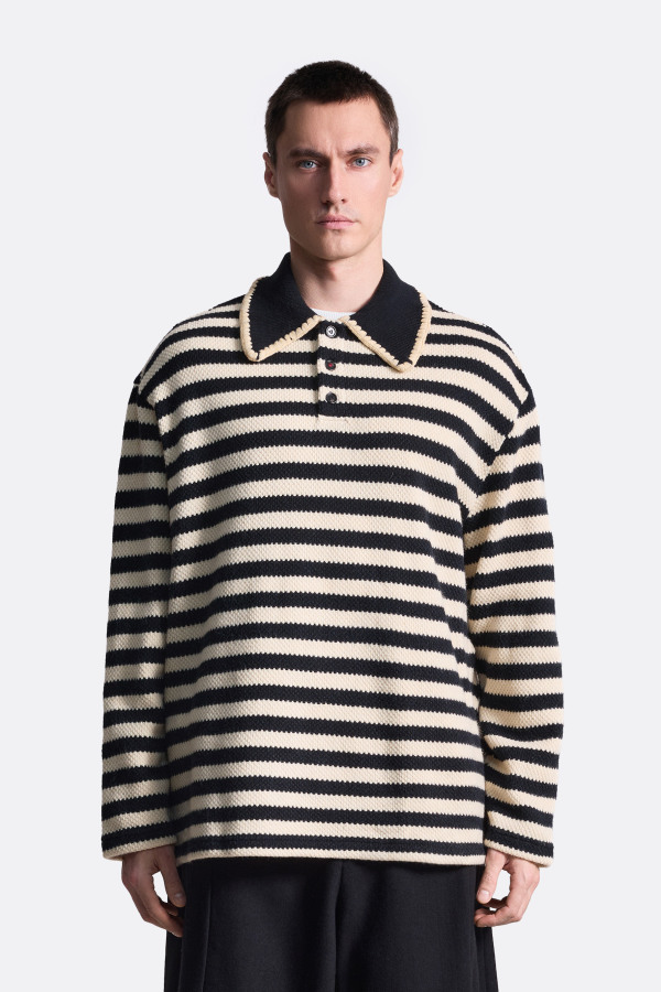 Поло в полоску — сочетание классики и современного дизайна. Модель выполнена в лаконичном чёрно-бежевом цветовом решении с выразительными горизонтальными полосами, которые придают образу динамичность и визуальную лёгкость. Воротник дополнен контрастной отделкой. Данное поло сможет стать отличным акцентом любого образа.
