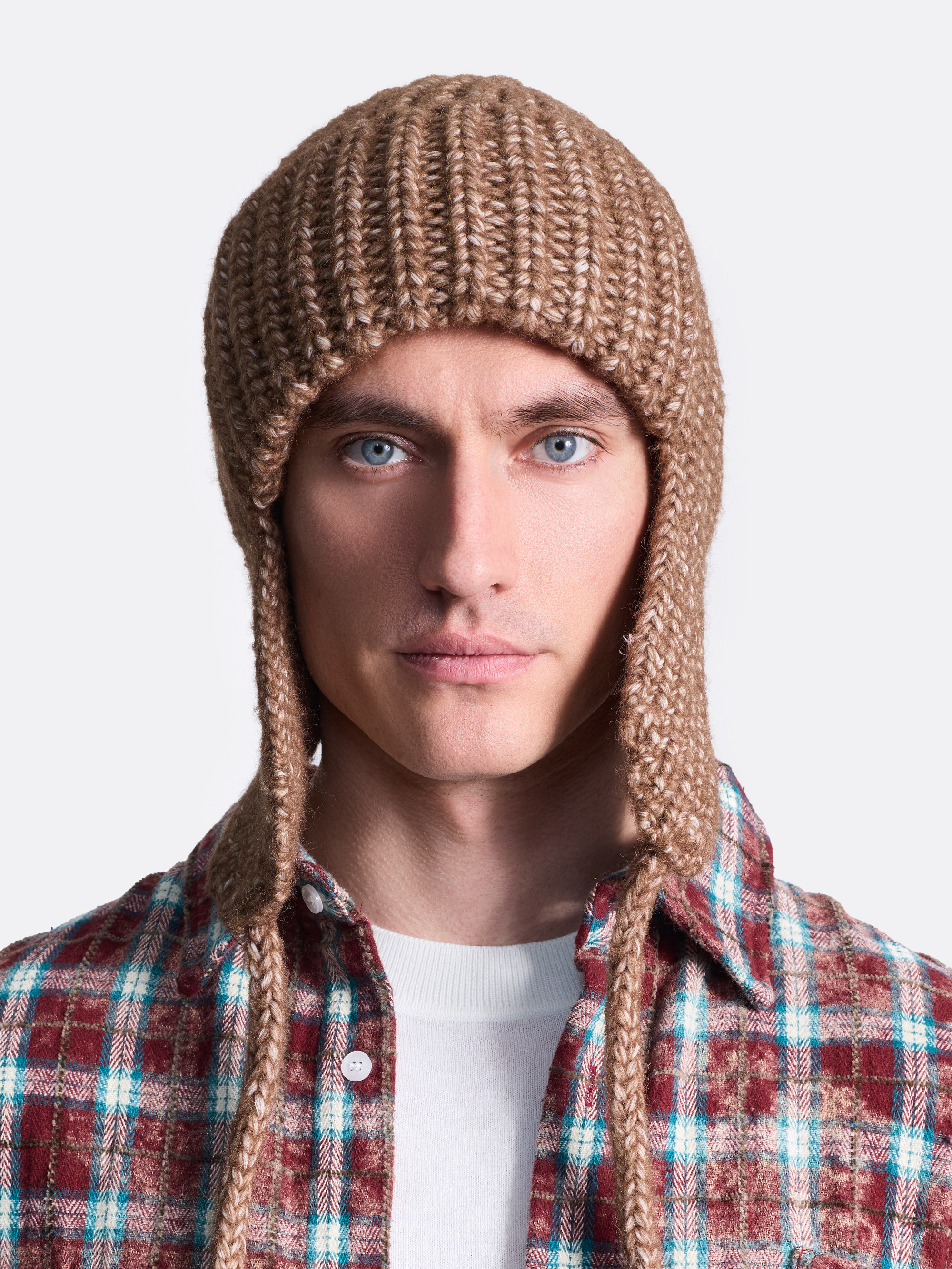Шапка-ушанка — стильное и практичное решение для холодных дней. Модель выполнена из мягкой пряжи с объёмной фактурой, которая не только приятна на ощупь, но и отлично сохраняет тепло. Особенность шапки — классический крой ушанки с длинными «ушками», которые фиксируются с помощью завязок. Такая конструкция надёжно защищает от ветра и холода. Рельефная вязка придаёт изделию выразительность и делает его модным акцентом в образе. Шапка представлена в коричневом, голубом, сером и черном цветах.