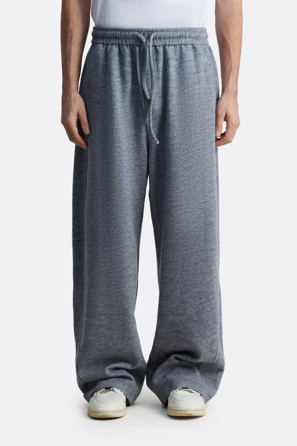 Свободные брюки, выполненные из приятного на ощупь материала на основе шерсти с лёгким ворсом. Прямой объёмный силуэт создаёт расслабленную вертикаль, а эластичный пояс добавляет комфорта и естественной посадки. Аккуратный шов вдоль штанины визуально вытягивает линию и делает образ чище. Лёгкость, тепло и минимализм — спокойная база для осенних и зимних образов.
