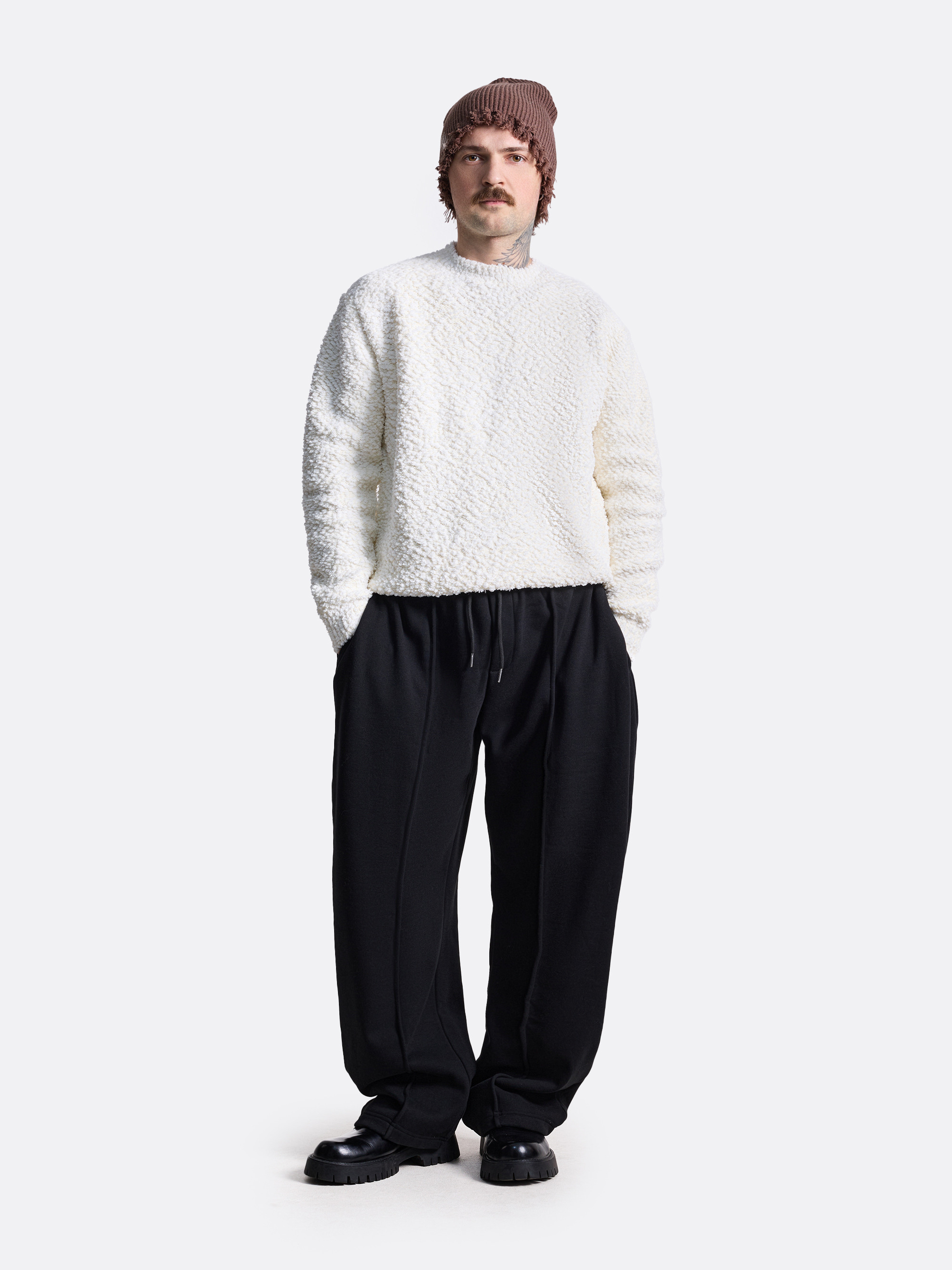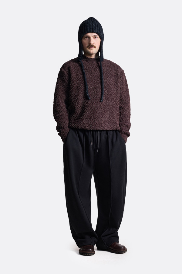 Мягкий фактурный свитер прямого кроя. Объёмная вязка с диагональным рисунком и едва заметным блеском. Эластичная резинка по краю рукавов и низу. Без лишнего — только уют, визуальная плотность и тепловой комфорт. Свитер представлен в молочном и коричневом цветах.