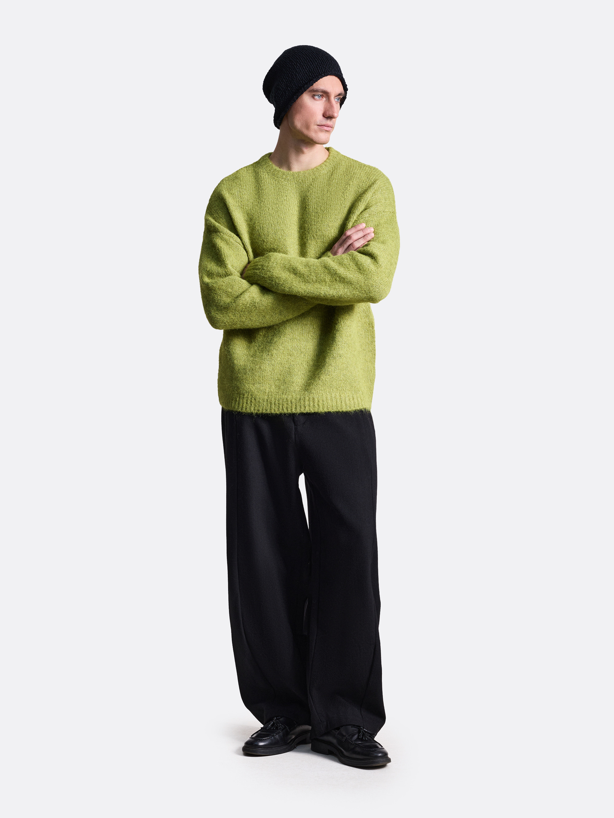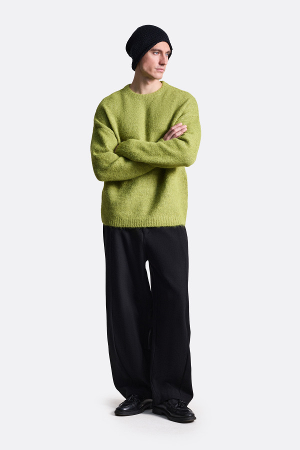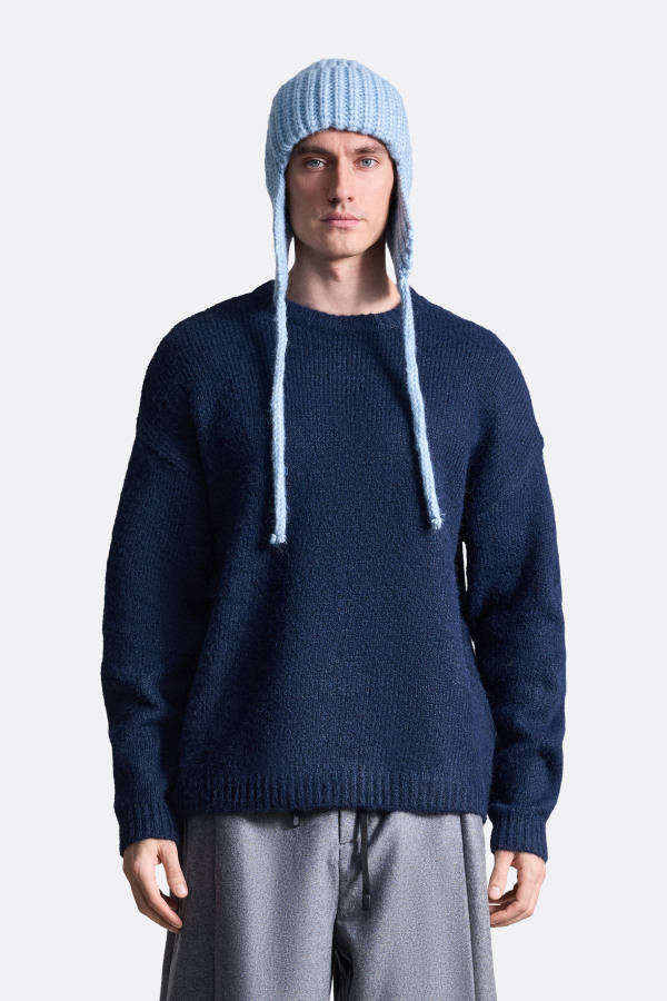 Вязаный свитер свободного кроя. Рельефная структура полотна создаёт эффект лёгкой пушистости, а аккуратные манжеты и низ изделия обработаны эластичной резинкой. Объёмная вязка придаёт модели особый шарм, а свободный крой обеспечивает комфортную посадку. Свитер представлен в бежевом, бордовом, голубом, зеленом и синем цветах.