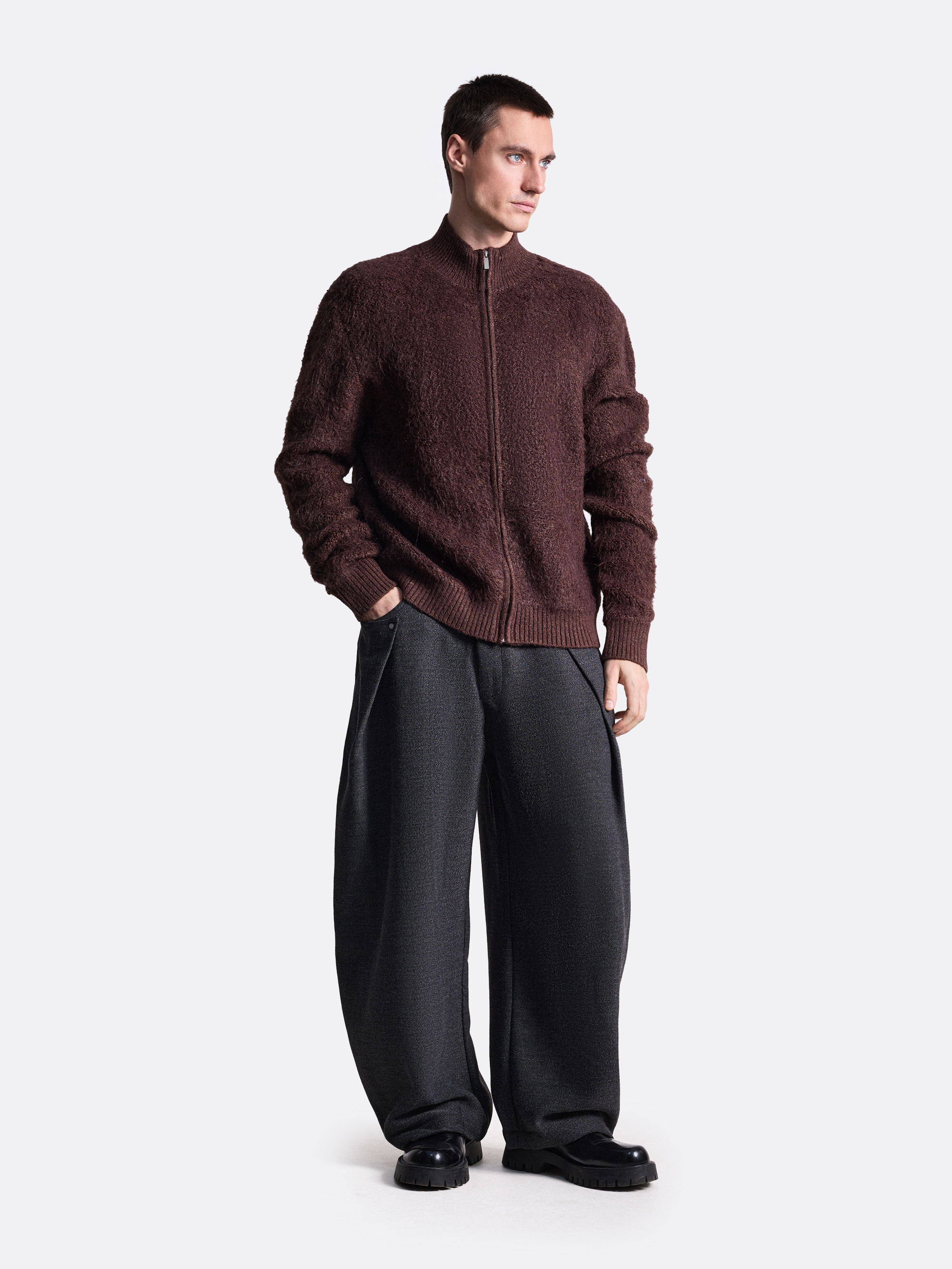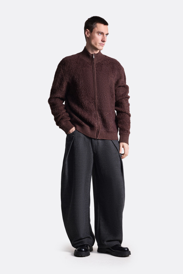 Пушистый свитер на молнии — стильный и уютный выбор для прохладных дней. Прямой крой, длинные рукава и высокий ворот обеспечивают удобство и защиту от холода. Свитер представлен в сером и бордовом цветах.