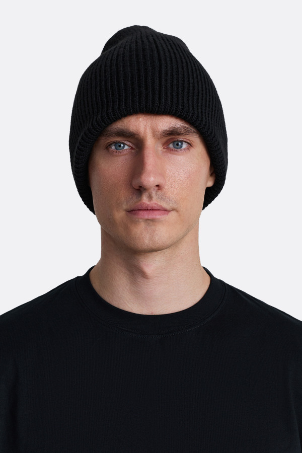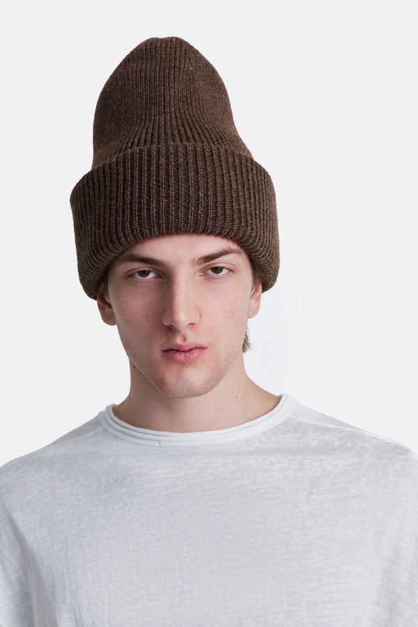 Шапка произведена из смесовой пряжи (30% шерсть, 70% акрил). Изделие мягкое и теплое, за счет своего состава отлично держит форму. Универсальная форма и длина, можно носить как с отворотом, так и без него.