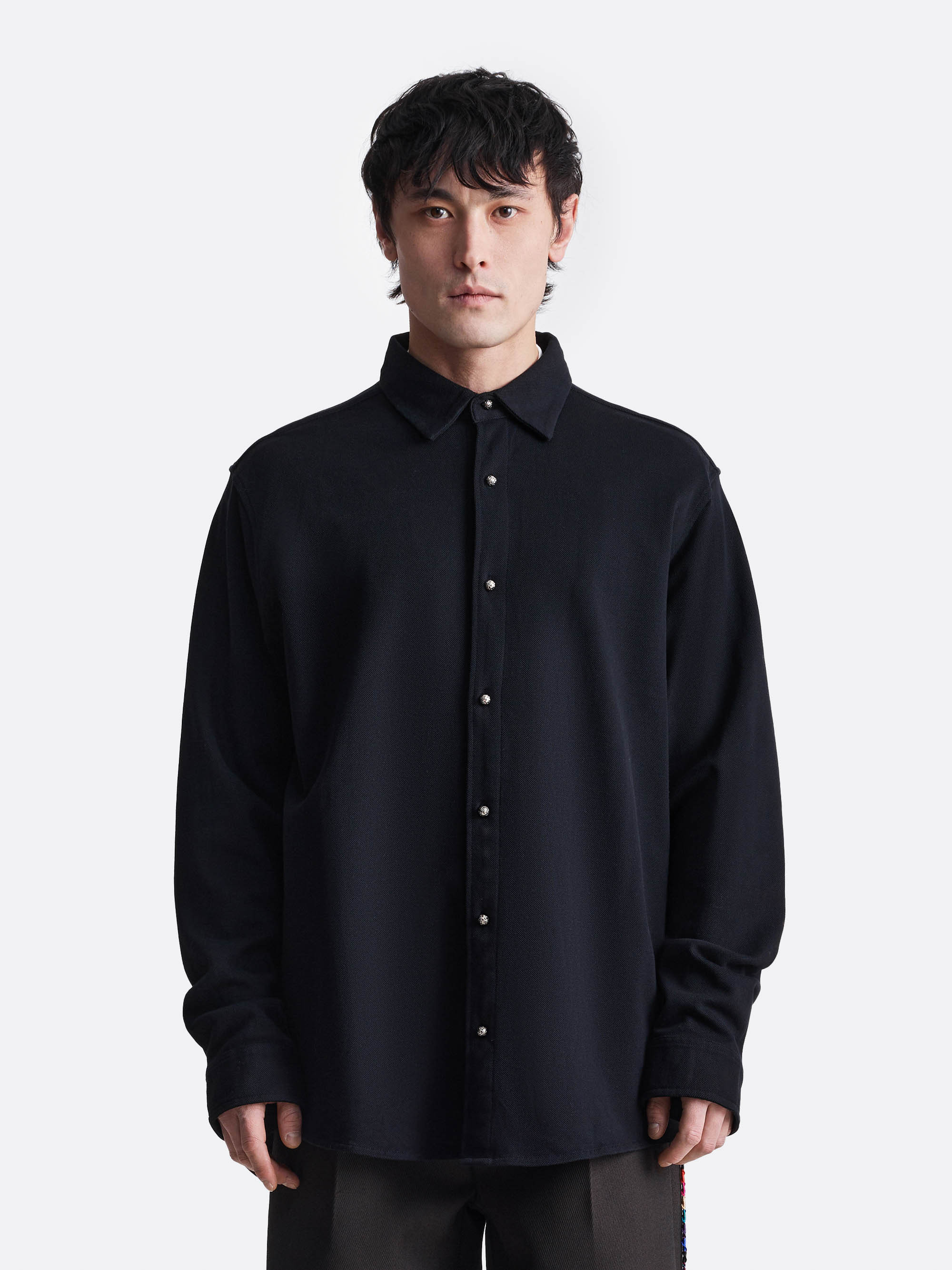 Рубашка свободного силуэта с мягкой посадкой и спущенной плечевой линией. Модель выполнена из 100% хлопка, что обеспечивает комфорт и естественную воздухопроницаемость. Центральная застёжка на пуговицы и классический отложной воротник сохраняют аккуратную, лаконичную форму. Модель представлена в чёрном, коричневом и белом цветах.