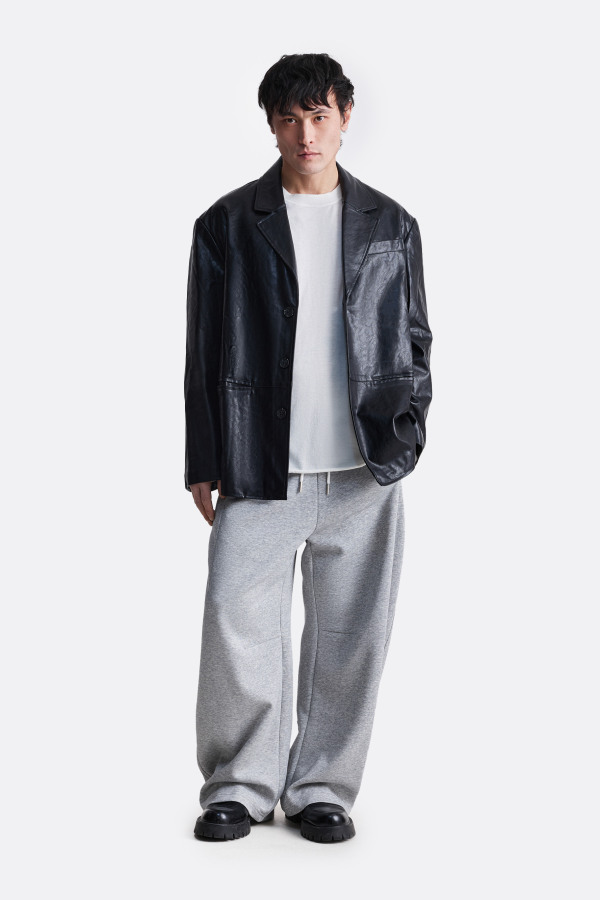 Пиджак из эко-кожи оверсайз-кроя. Пиджак имеет застежку на пуговицы и слегка спущенную линию плеч, что придает ему элегантный и строгий вид. Модель дополнена накладным карманом на груди и по бокам, что добавляет изделию завершенности. Пиджак представлен в черном и коричневом цветах.