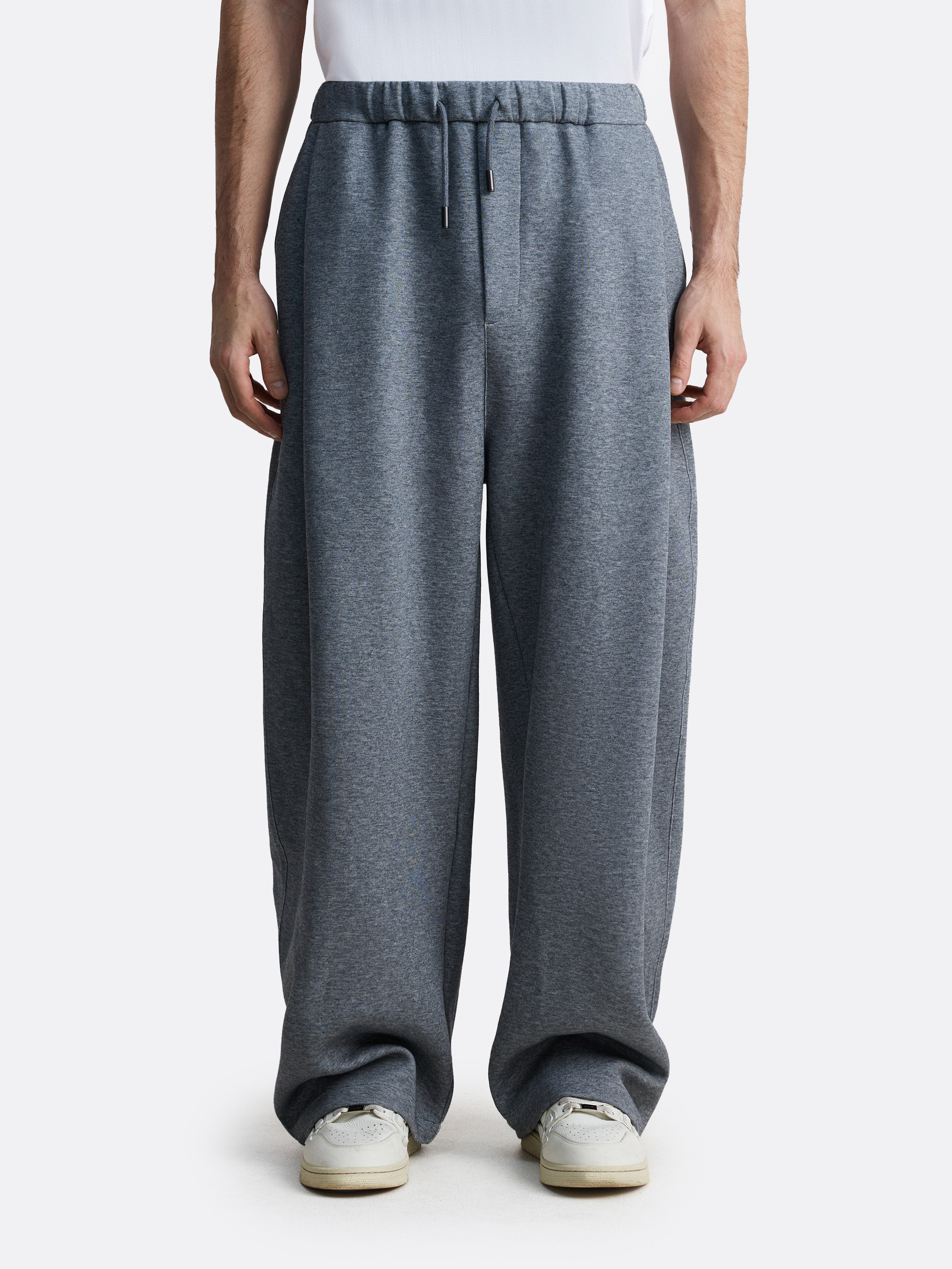 Свободные брюки с выразительным объёмом и мягкой посадкой, которые держат баланс между расслабленным силуэтом и аккуратной конструкцией. Эластичный пояс со шнурком, округлые линии по бокам, один задний карман и лёгкая фактура материала — всё собрано так, чтобы брюки двигались за телом и давали комфорт без ощущения тяжести. Силуэт плавно уходит к низу, создавая фирменный дрейфующий контур.
