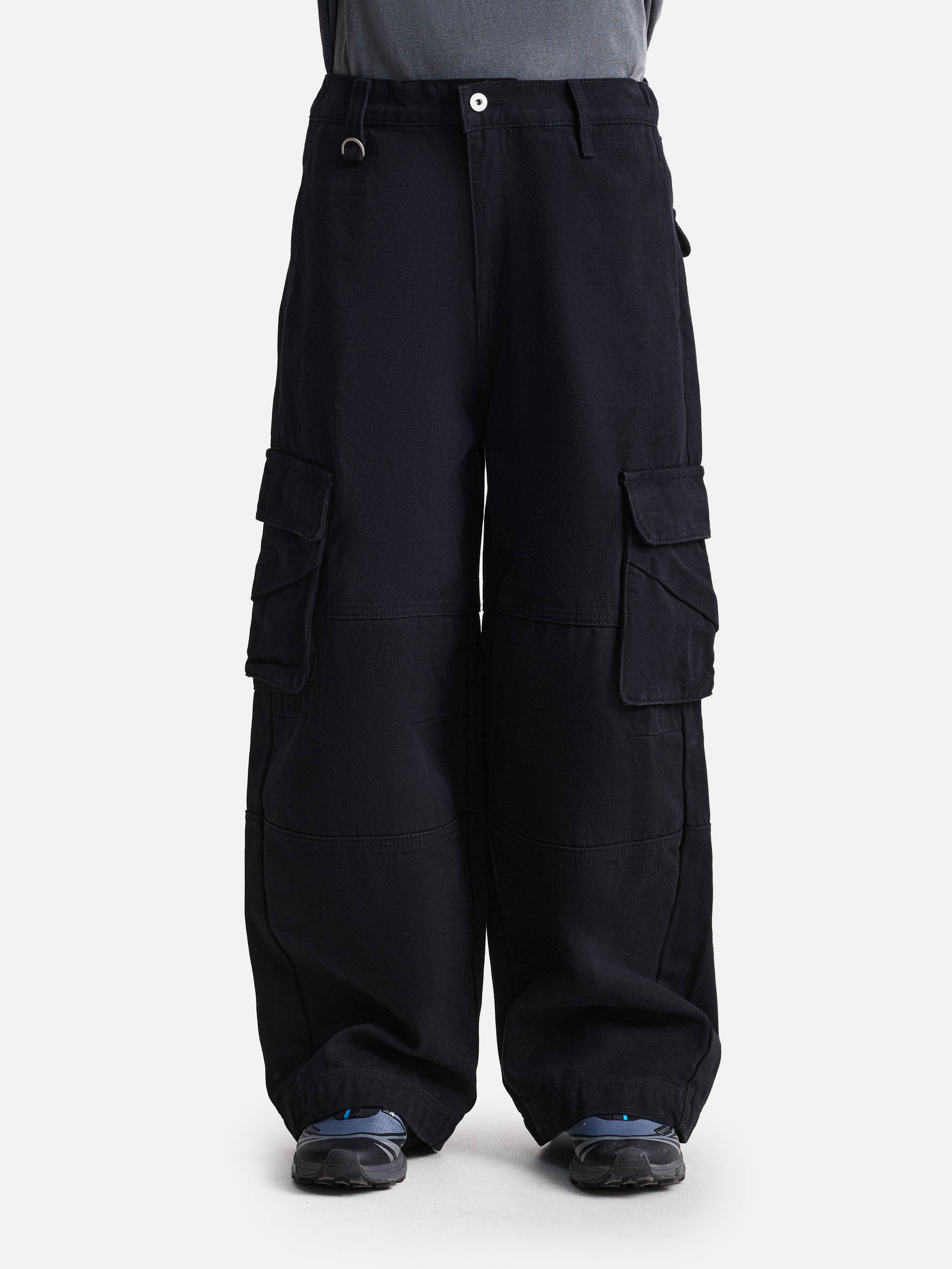 Брюки в стиле карго с объёмными прямыми штанинами и акцентными боковыми карманами с клапанами. Дополнительное металлическое кольцо на поясе добавляет функциональный элемент. Конструктивные швы подчёркивают форму, создавая выразительный силуэт. Выполнены из 100% хлопка. Представлены в зелёном, чёрном и коричневом цветах.