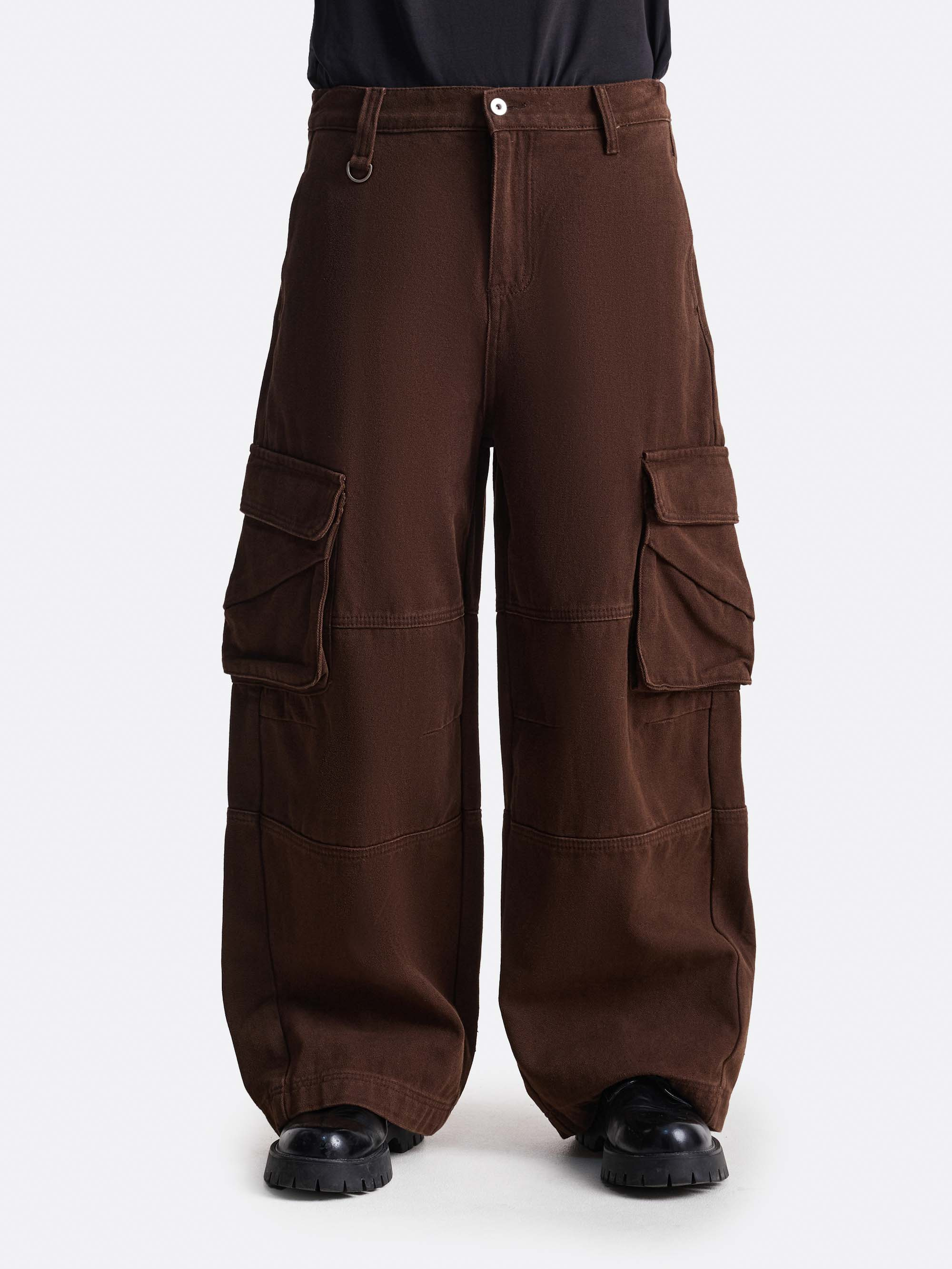 Брюки в стиле карго с объёмными прямыми штанинами и акцентными боковыми карманами с клапанами. Дополнительное металлическое кольцо на поясе добавляет функциональный элемент. Конструктивные швы подчёркивают форму, создавая выразительный силуэт. Выполнены из 100% хлопка. Представлены в зелёном, чёрном и коричневом цветах.
