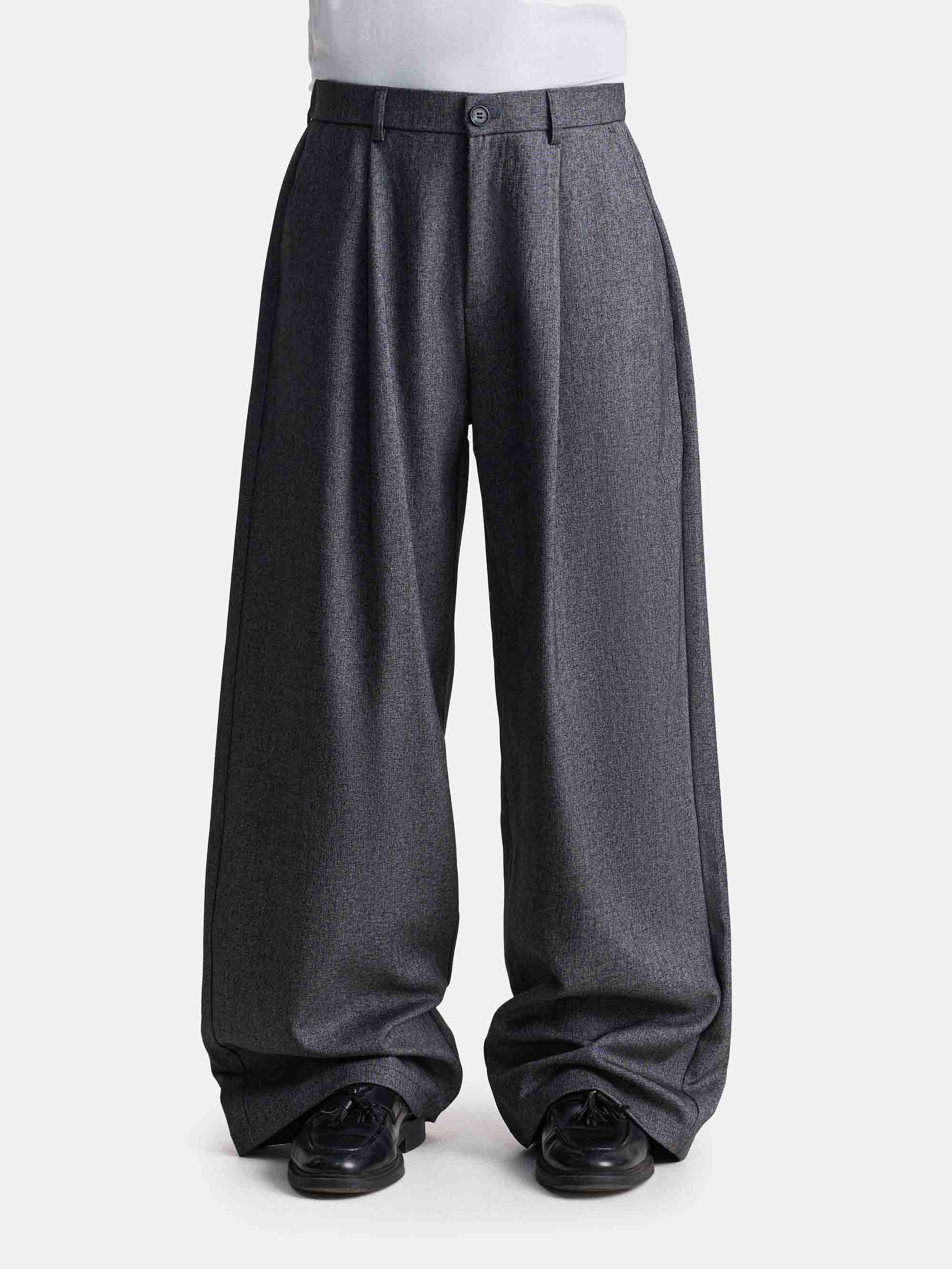 Модель с расширенным силуэтом и свободными прямыми штанинами. Глубокие складки у пояса создают дополнительный объём и мягкое движение ткани. Пояс со шлёвками и естественная драпировка формируют аккуратную посадку.