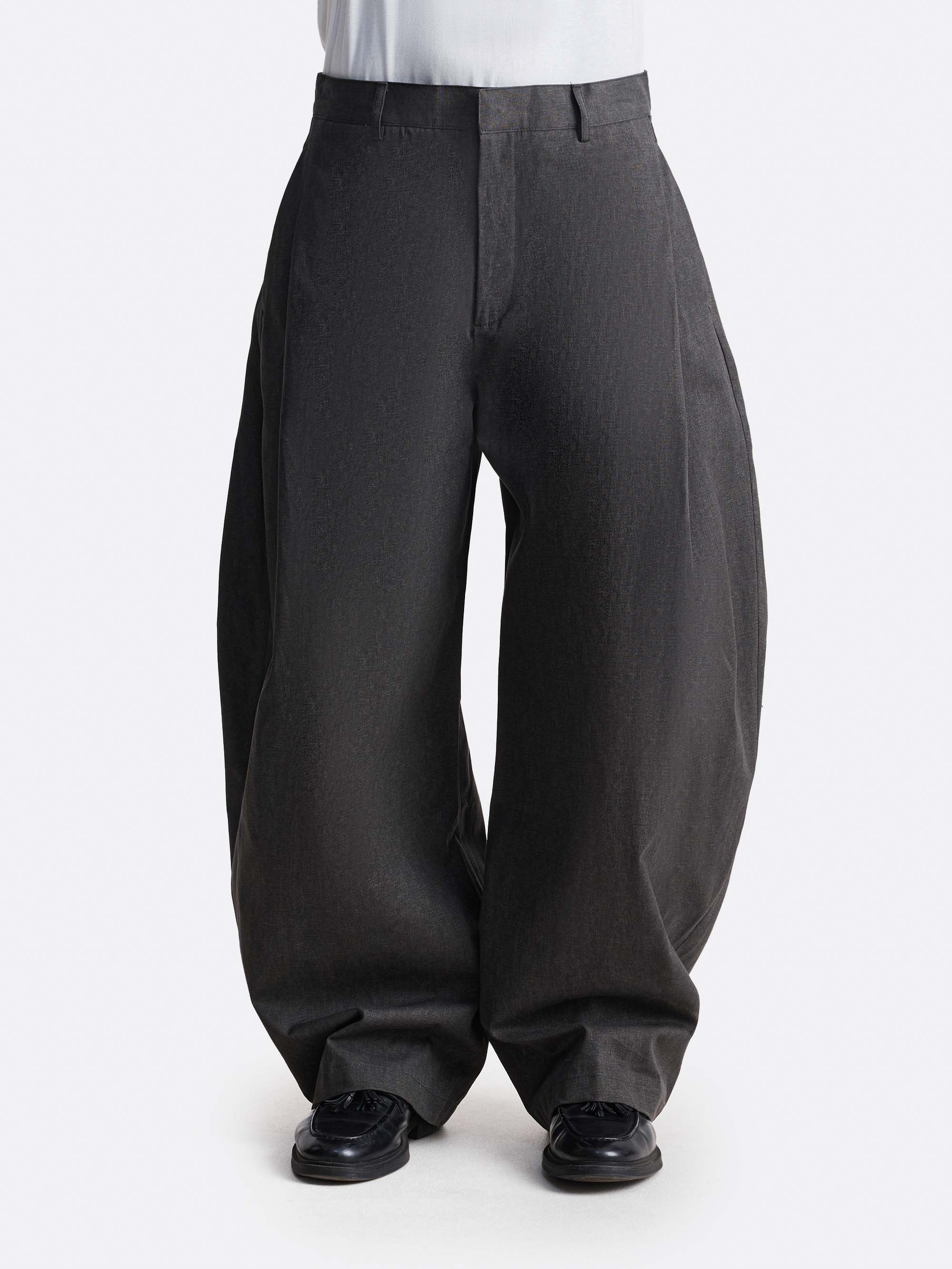 Брюки свободного кроя с широкими штанинам, формирующими объёмный силуэт. Натуральная ткань из 100% хлопка обеспечивает комфортную посадку. Лаконичный крой и отсутствие декоративных элементов подчеркивают утилитарный характер модели и позволяют легко интегрировать её в минималистичный комплект.