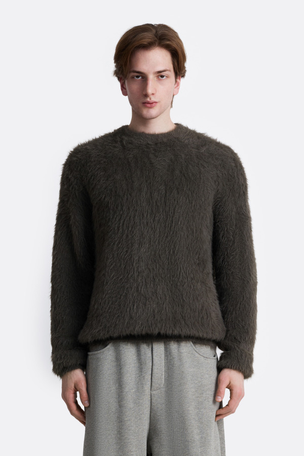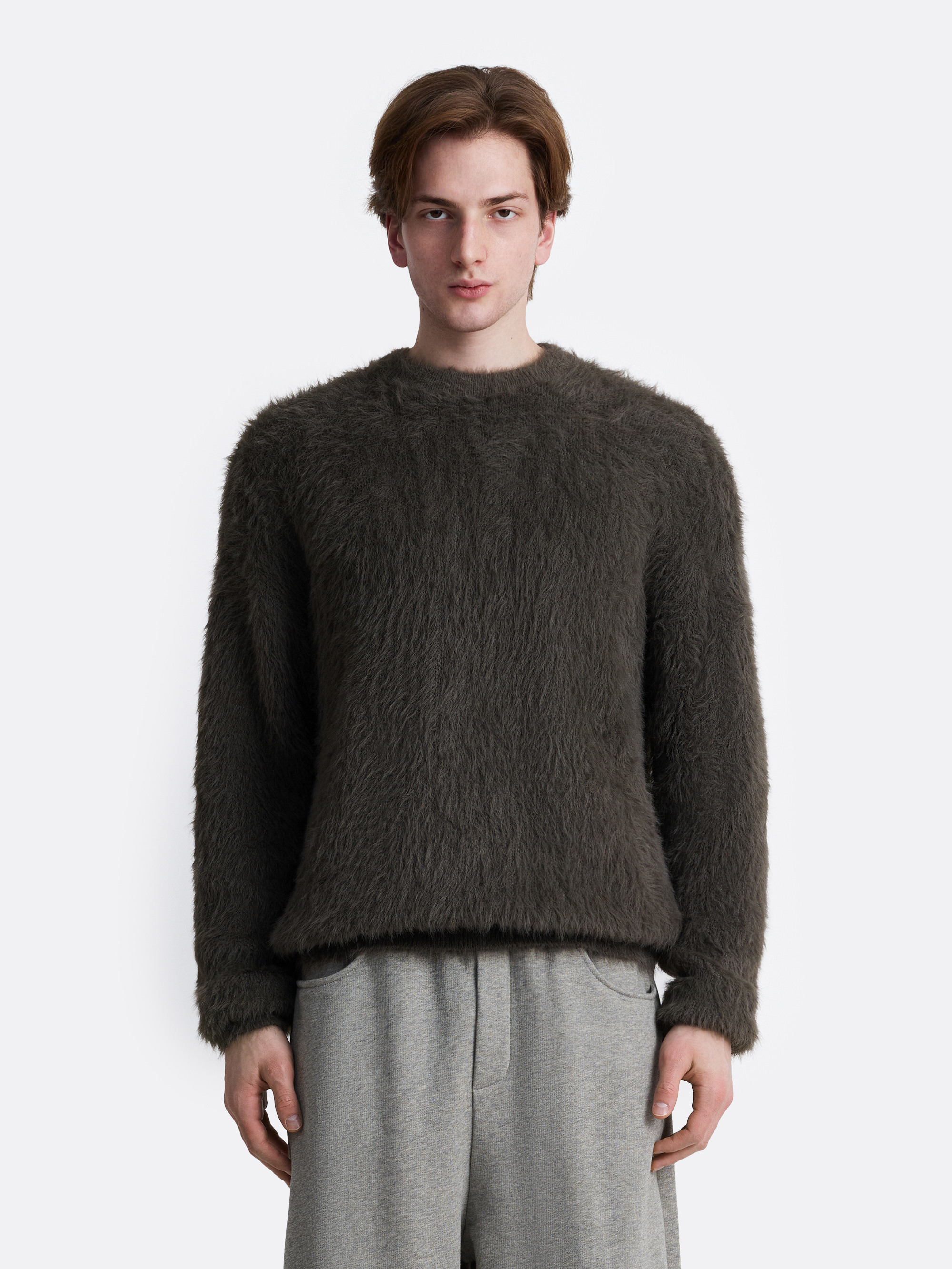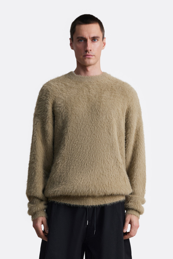 Пушистый и мягкий свитер. Массивная фактура с удлинённым ворсом создаёт выразительный объём и даёт невероятный комфорт телу. Крой — расслабленный, горловина круглая, швы почти незаметны.